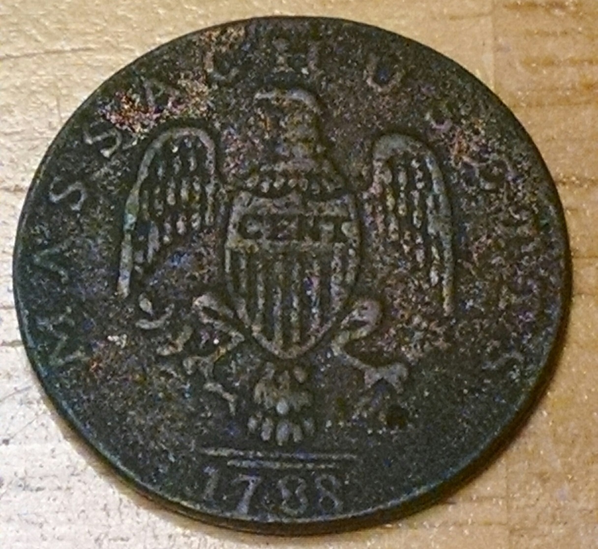 compare with this http://www.coinfacts.com/colonial_c...ers/1788_ma_cents/1788_ma_cent_ryder_01_D.htm