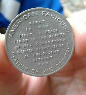 I also have one of these George Worshington tokens w the hole !!!$$$ I want 2 hunnid and fiddy thousand dollaz!!! But i would settle right now for $20???? No? Ok $2.50 and a jawbreaker ????? How about a dollar and some envelopes???