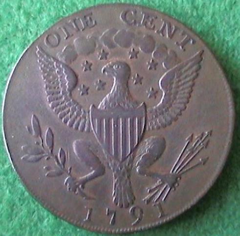 Nice Washington piece, Ryan. Congratulations! You seem to be building a nice colonial collection, judging also by your Elephant Tokens. I have an example, similar to yours - 1791 Small eagle cent. According to the Bowers Encyclopedia of 'Colonial and Early American Coins', the small eagle cent is somewhat scarcer than the large eagle variety. Struck in Birgmingham, England, the book states that a cask full of these coins contaning 2500 large eagle cents and 1500 small eagle specimens were sent to Philadelphia to be distributed to legislators. Most were eventually released into circulation. As is well known, Washington himself dissaproved of coins bearing his effigy, as this "has the stamp of royalty" in his own words. This is a tribute to general Washington and his democratic principles.