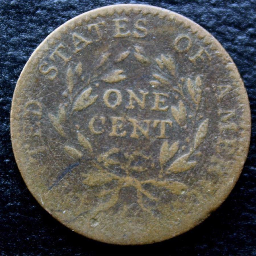 This is S-57. LIBERTY is down close to the forehead. that makes it after S-44 On the reverse ES are close together as are the ends of the wreath. The gap between the ends of the wreath is directly below the gap between ES. Those features eliminate most of the varieties but the clinching diagnostic are the two berries below M. There is one inner and one outer berry and they are almost directly across from each other. That is only true on S-57 and NC-6 and the position of the 1 in the date compared to the hair does not match that of NC-6.