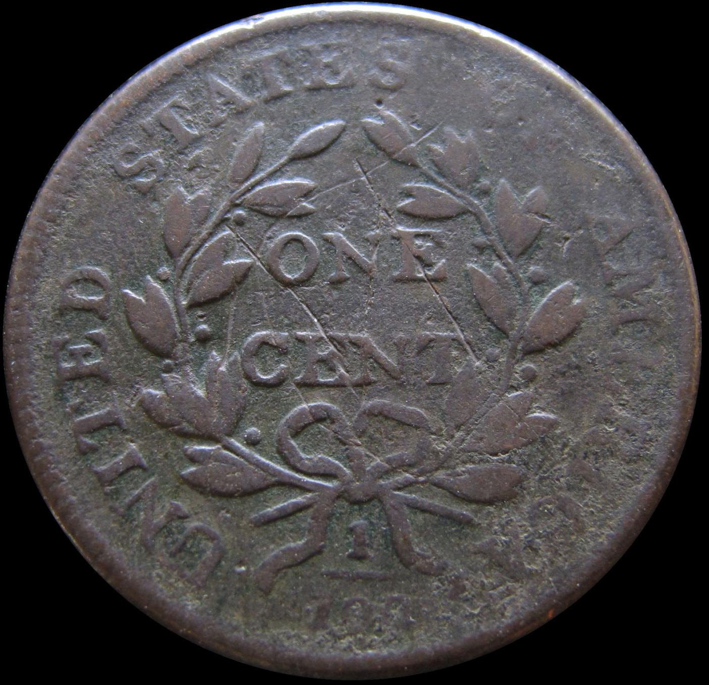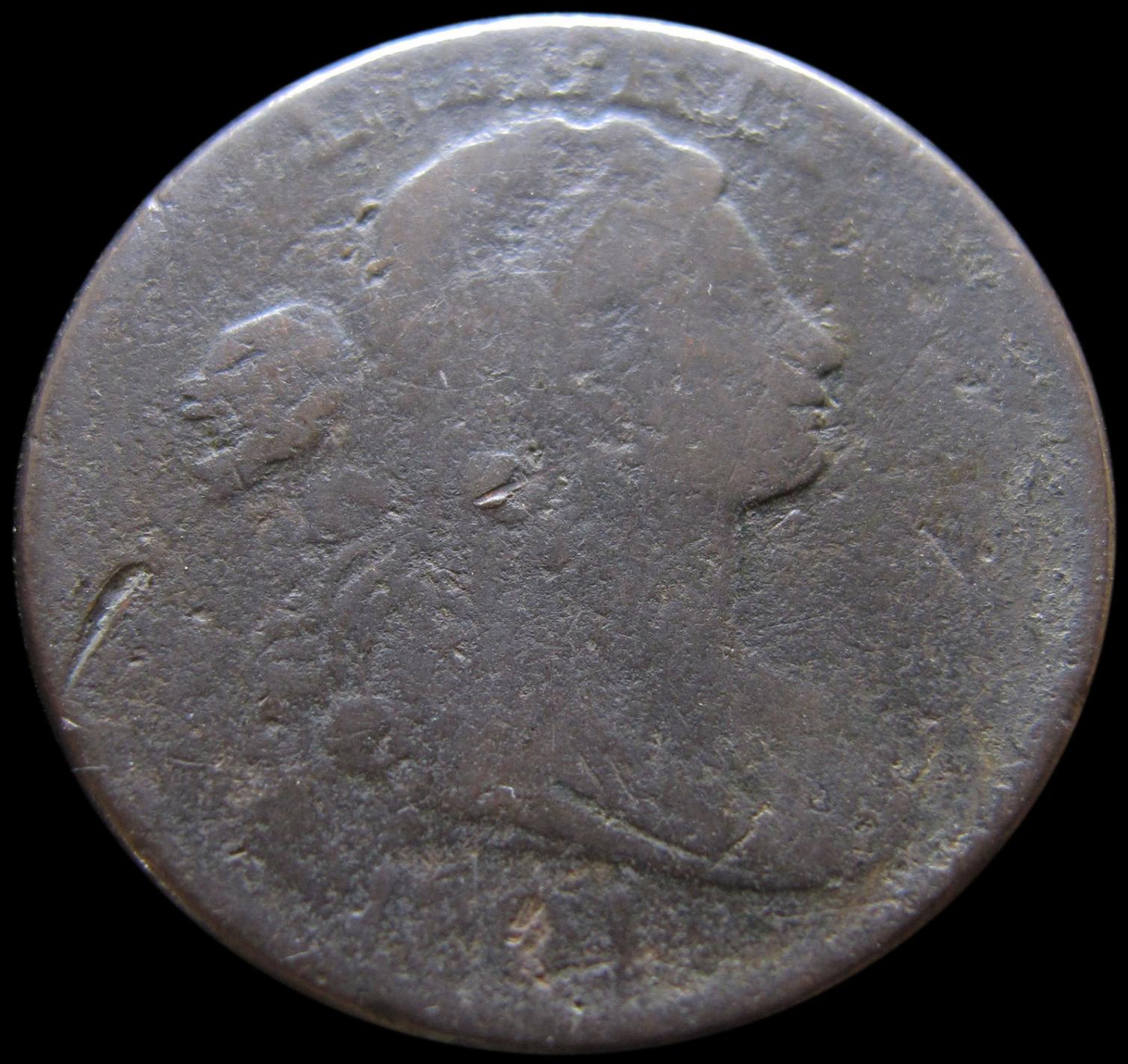 is 1799 the only year of draped bust cents that has this type of reverse? (see photos) the word CENT on the reverse, mainly the letters C (i would call it a dropped C for lack of a better phrase.) and the E are different large cent obv.jpg large cent rev.jpg (and the placement is also different of these letters) than the other years and varieties of draped bust large cents that i have seen. the E in the word ONE on the reverse is also different. it looks like there is an 8 in the area where the last digit of the date would be on the obverse, but i am not sure.