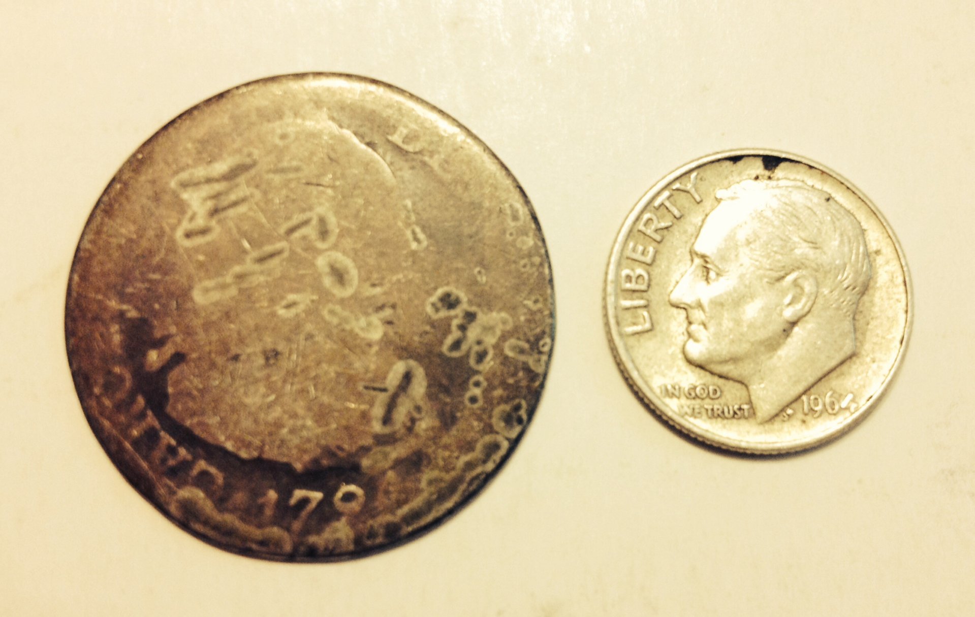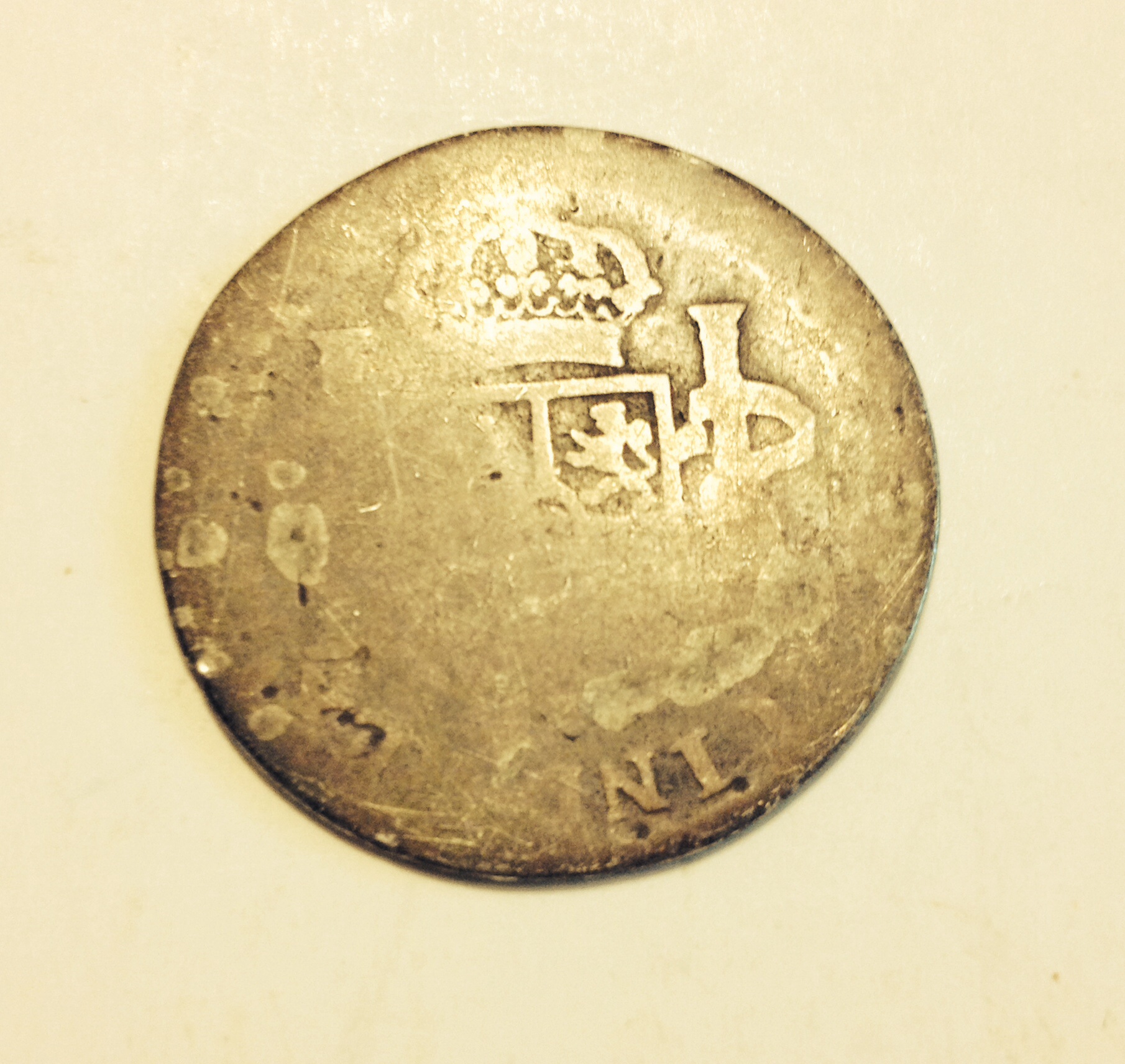 I have been reading some threads and websites but simply can't figure out for sure what coin this is- I seem to think it is a 1794 8 reale but considering loss of detail and how similar such coins look I can't seem to be certain. Any help with ID and/or value would be appreciated!