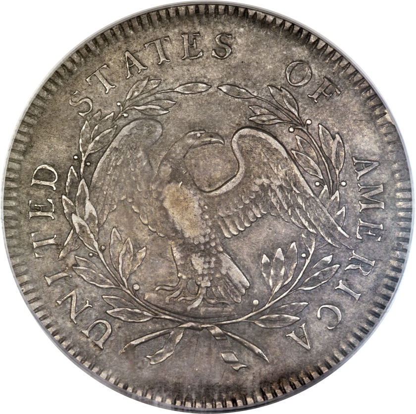 So, I really just wanted to have a poll with fun selections (I really wanted to include another couple of choices, but thought better of it, as religious / political statements violate forum rules.) Here's a 1795 Draped Bust Dollar that I believe is a counterfeit. It's not magnetic and weighs 26.0 grams Edge lettering is as follows *I'm going to use [-] for a symbol that actually is a full rectangle with a line in the center. *I'm going to use (-) for a symbol that actually is a full circle with a dot in the center. [-] *** ONE ** UOLLAR ** OR ** UNIT [-] ( ) -] ** UNURED [-] (-) [-] (-) [-] ** CENTS ** [-] (-) There are also these three letters on/under UNU of UNURED: NUI