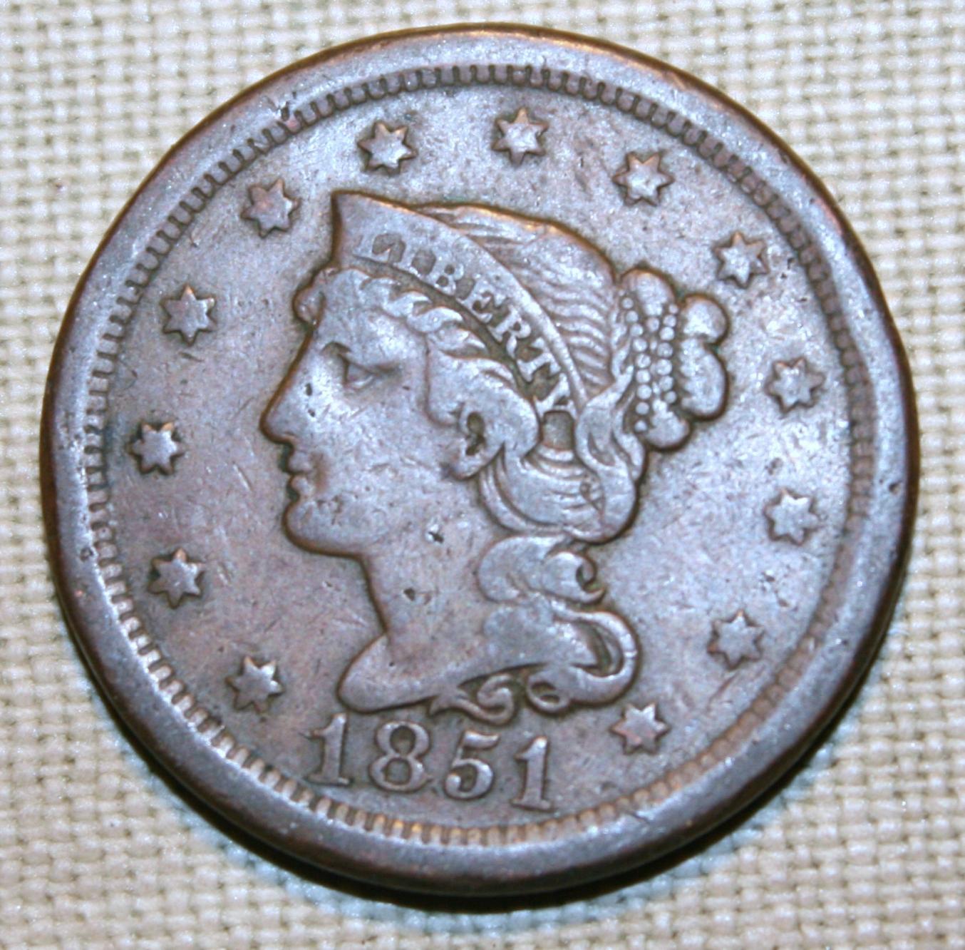 Large cents have always been popular. Early American Copper collectors just dance to a different drummer. The typically shun slabs and TPG's, and grade coins along a slightly different standard. Old copper isn't body bagged for damage. It is net graded. But I agree that more folks are discovering these very cool coins. They were made during the country's early days using laborious minting methods, poor quality material, with controversial designs that seemed to constantly change. In 1839, for example, four different obverse designs were minted. The coins themselves are fun to collect raw. They're big (almost half dollar size), heavy, and made from pure copper. They can be a little rough due to their soft metal and poor planchets. But many survived nicely and they're not terribly expensive (except for the earliest years). The OP's 1851 is not an 1851/81. Lance.
