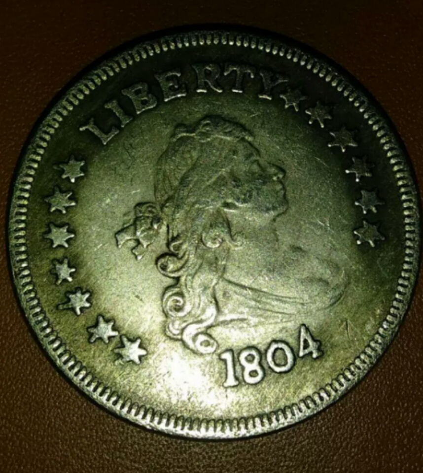 As others have said, basically the only thing that is right is it is some metal and round. Everything else about it is wrong. It's fake. Good job realizing it's fake. Another easy way to know it's fake: A real 1804 silver dollar is worth 7 figures. Basically the most sought after United States coin ever. There is no way one of these would be around some seized estate sale without everyone knowing.