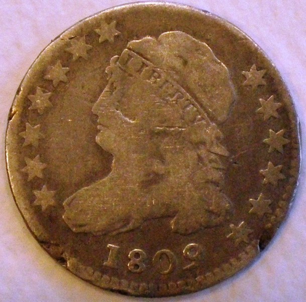 Ah....always nice to see an 1809 dime. Nice example CappedBustDimes. However many actually minted of this date, the 1809 dime is certainly a scarce coin today with somewhere in the range of 200-300 known. Certainly one of the top 3 or 4 dates in the capped bust dime series. Close to the 1822 dime with regard to scarcity IMHO. A lot was written about this date and its scarcity in another forum. This seems to have helped create additional collector for the date with the result that many examples have surfaced. One major dealer for example has now/has had up to 6 examples of the 1809 dime listed at any one time.