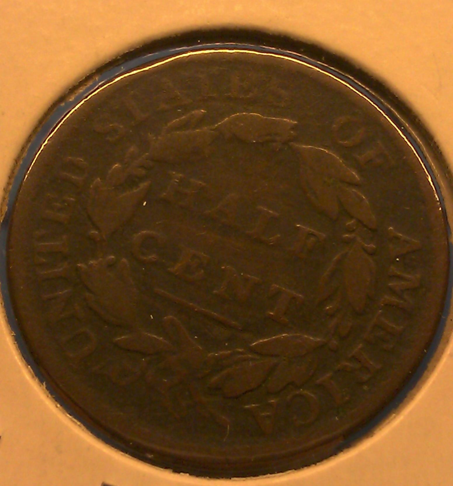 What you have is a Half Cent, not a Large Cent. I would grade it G-6 to VG-8. Grey Sheet is $57 in G and $59 in VG.