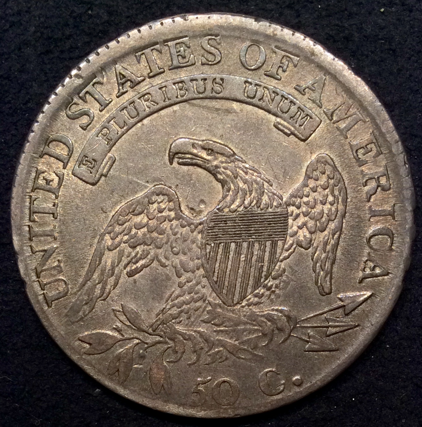 There is actually quite a bit of luster on this coin. I always grade early bust halves by looking at the right wing and the luster.