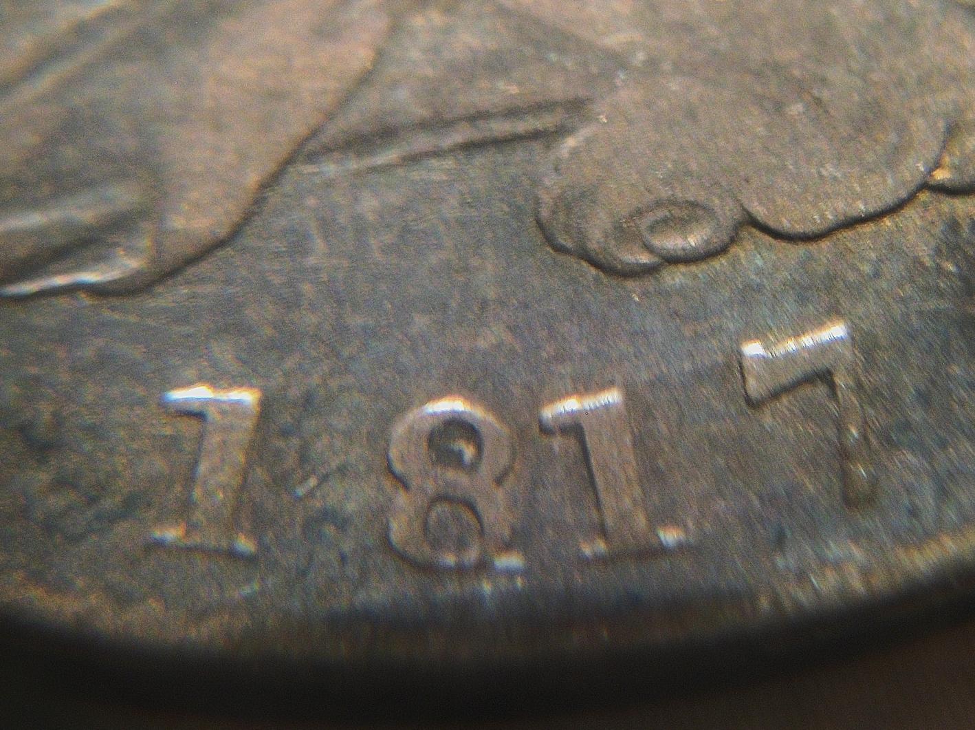 Here's the thing with the date. Sometimes the numerals were punched in one at a time, and sometimes they were punched in with a block punch. This one, it looks like the 1 and 7 were punched in individually while the 8 and 1 were punched in with a 2 numeral block.