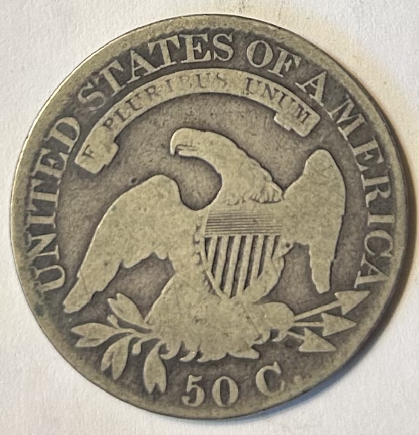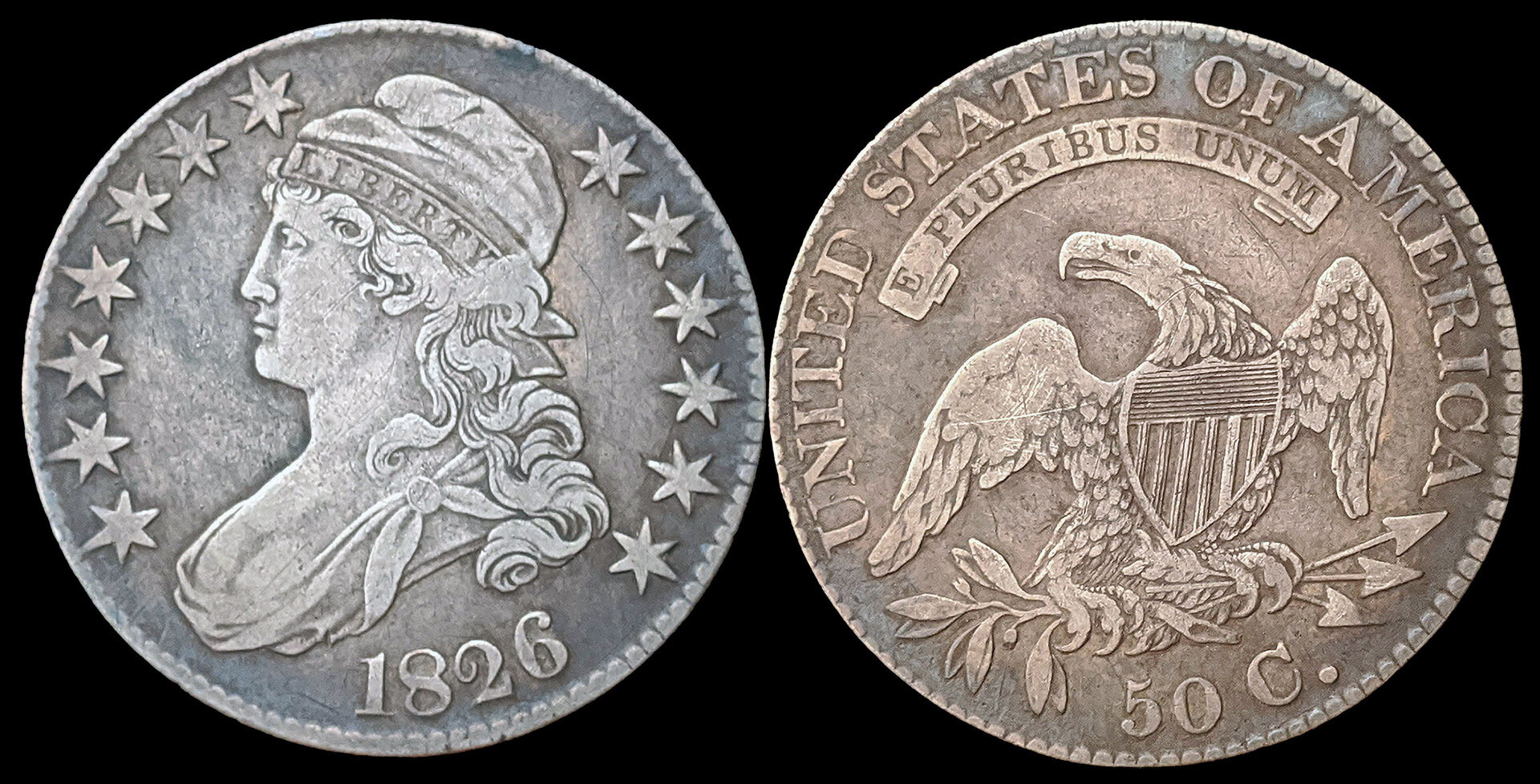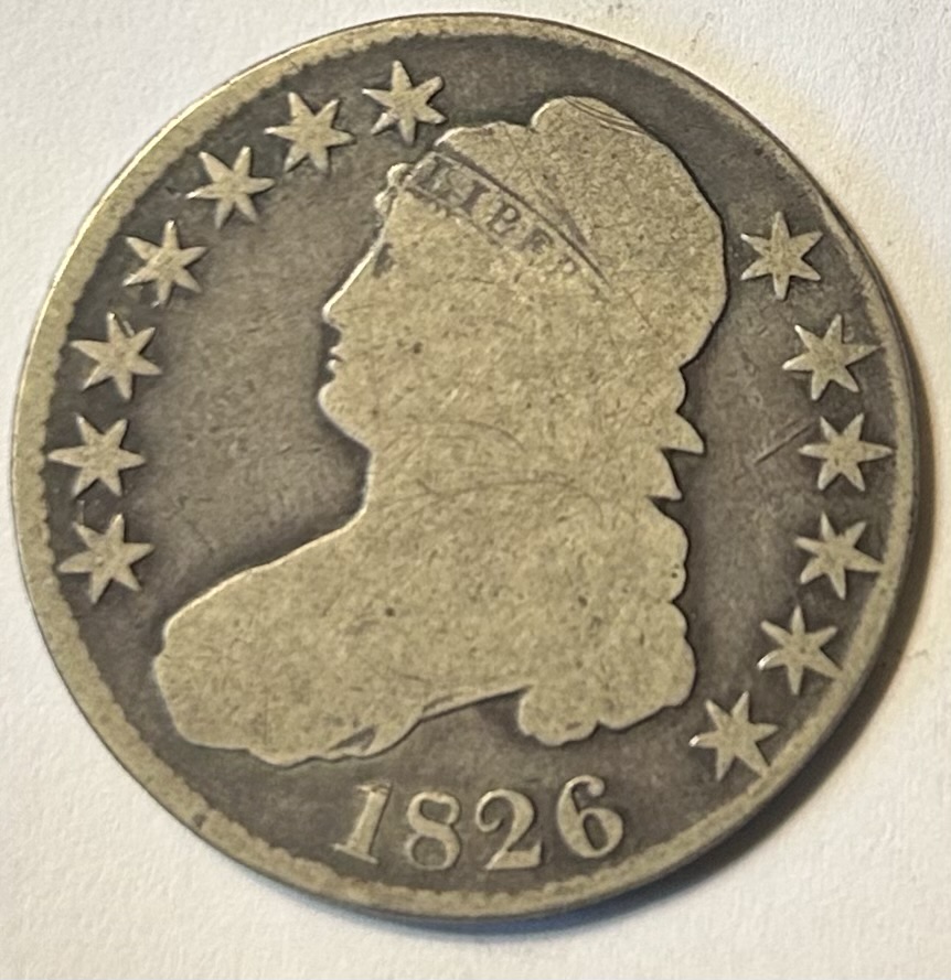 A worn but clean 1826 Bust Half Dollar. Just over 4 million minted. She’s worn but still pretty. I’ve never met a Bust coin that I didn’t like.