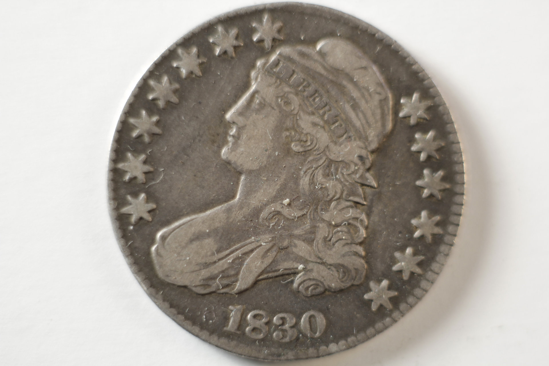 Bust halves are fantastic. They're thick, juicy, old and affordable. How can you lose? The OP's coin looks perfectly nice and provides a decent example of this type. It still has a fair amount of detail in Liberty's flowing locks. For grade comparison, I have an NGC XF 45 example of, I think, the same year and variety (but please correct me if I'm wrong). It still has a decent amount of luster on it.