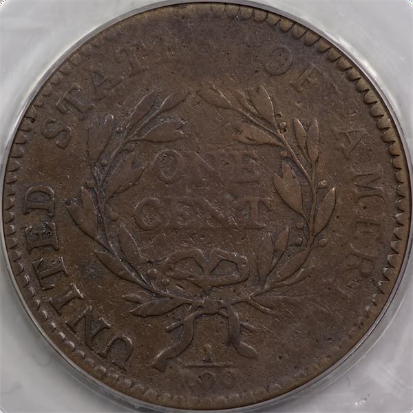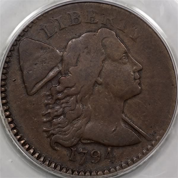 Looks to be an N.1 variety (R1), Animosity. It's a little hard to attribute the more worn large cents because often the diagnostics are missing. Denticles, the inner circle, die cracks and chips are weak or gone completely. But you can still judge leaf positions, lettering, star orientation, etc. Two or three years ago I got really interested in them and decided to build a set, raw, at around the XF grade. It is such a pleasure to finally be able to hold old coins, not slabs, in hand. These old cents are heavy and have great stories behind them. I quickly found I could obtain AU examples of the late dates but I'd be lucky to find and afford even A3 grades for the early ones, like the 1793 Chain cent, Liberty Cap and Wreath cents. 1799 and 1804 are also very pricey. So I adjusted my goals. I'm still missing four coins but there's plenty of time. The Dansco album weighs about seven pounds! Here's a 1794 Liberty Cap, "head of 1795". It's one of the few I didn't crack out of its slab because you never know if they'll get back in. PCGS graded it F12. The die pair is typically weak on the right side and strong on the left. Lance.