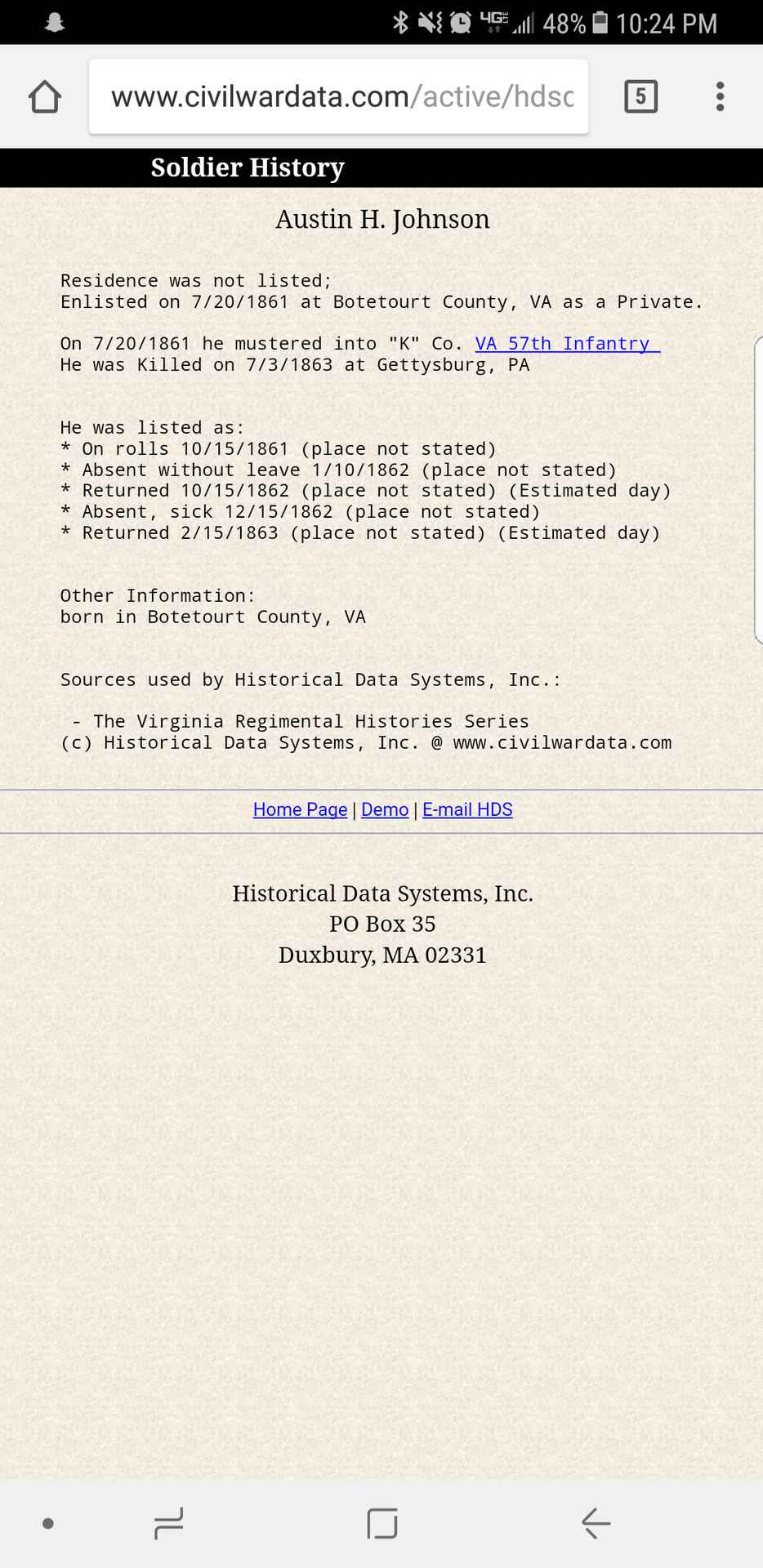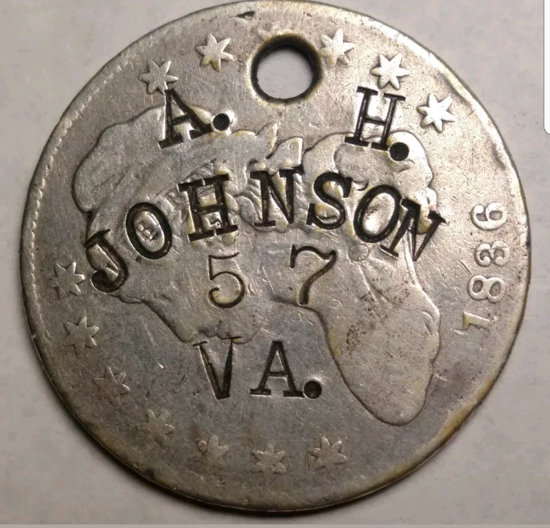 Having collected Civil War era exonumia for over fifty years now, I'll humbly offer my take on this piece. I doubt that even Rich Hartzog, astute as he was, could even authenticate this potential Confederate identification disk. Sadly, Rich passed away just this past month. Had this piece been accompanied by some personal memorabilia and provenance, it'd then be somewhat convincing. Otherwise, it's plausible, yet nowhere near convincing, for a dedicated collector. Novices or eBay hawkers will surely pay a premium for a highly questionable piece like this though, hoping to score. The misaligned letters were punched by someone who was inexperienced, it seems. However, the neat, smoothed hole looks to me like it was created by a craftsman. While this piece could have been stamped during the war, it could just as likely have been stamped many years later. Perhaps, it was done to display at post war encampments by Johnson, himself? Or, it could have been stamped much later by a family member or even a reenactor? Any or all of these scenarios is just as possible, if not probable, than the most desired scenario of it being a contemporary Confederate "dog tag." While the letter punches used to create this piece look to be a 19th century font, these early punches are still quite obtainable. I have a complete set of letter and number punches that once belonged to an early silversmith. They came in a thick, handcrafted box, along with a small, brass hammer and anvil. I also have some holed Bust and Liberty Seated Half Dollars. I've contemplated creating one or two pieces like that of the OP, just to use to educate collectors and make them wary. Note that I've long collected contemporary counterfeit coins and used them to make fellow collectors wary. On the plus side for the OP's piece is that the subject, Johnson, was not a higher ranking soldier or one of note. It seems to me that a faker would choose someone of rank, akin to the "Vairin" fakes. On the downside, a half dollar was a nice piece of change, during the Civil War, and these were then generally hoarded. So, using a large cent as an ID disk would have made far more sense economically, it seems. From my humble perspective as a collector who's paid many hundreds of dollars for any single, desired counterstamped coin, I'd value an educational maverick piece like this in the $50-$75 range. That said, the vast majority of coin dealers wouldn't pay me that much for a piece that I paid $500 for. What the value of exonumia boils down to, more so than coins and paper money, is knowledge. Some thirty-plus years ago, I spotted a counterstamped coin in a dealer's case. It appeared to be a desirable logo punch, bearing a name, town and occupation of some late 19th century merchant, on a large cent. Upon examining the piece, I asked the dealer, "How much?" He said it wasn't for sale and asked, "If it was for sale, how much would you pay?" I told him that because it wasn't a recognizable, commonly seen classic stamp, I'd offer but $15. He complimented me, adding that he'd been offered far more than that at times. He said he owned the original punch and had stamped the coin, himself; this, so as to caution collectors about counterstamped exonumia.