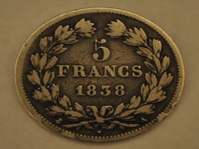 Assuming it's real-- In that condition, it probably wouldn't bring much more than bullion value. A coin similar to yours recently sold on Ebay Canada for less than 25 Canadian dollars http://www.ebay.ca/itm/1838A-France-5-Francs-Large-Silver-Crown-Sized-Coin-/270820711034