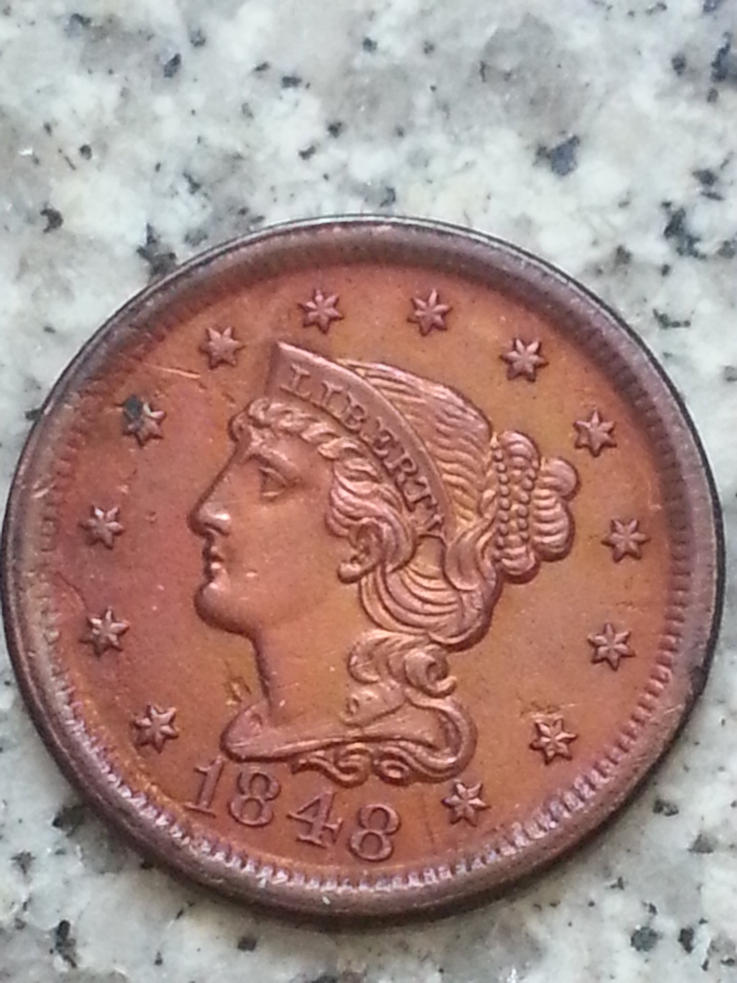 I rarely get US coins but ive always loved the large cents. i got this one today. the obverse has some hits but the reverse looks very good. not my series do any opinions on grade would be welcomed. not my photos shiney from the light thanks chris