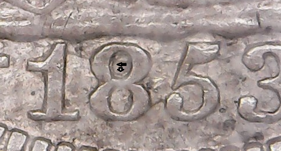 There are no known rpd for the 1853 arrow half dime. If you could post the entire coin ,from what I'm seeing it is die chips or clashes.