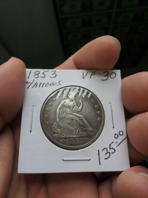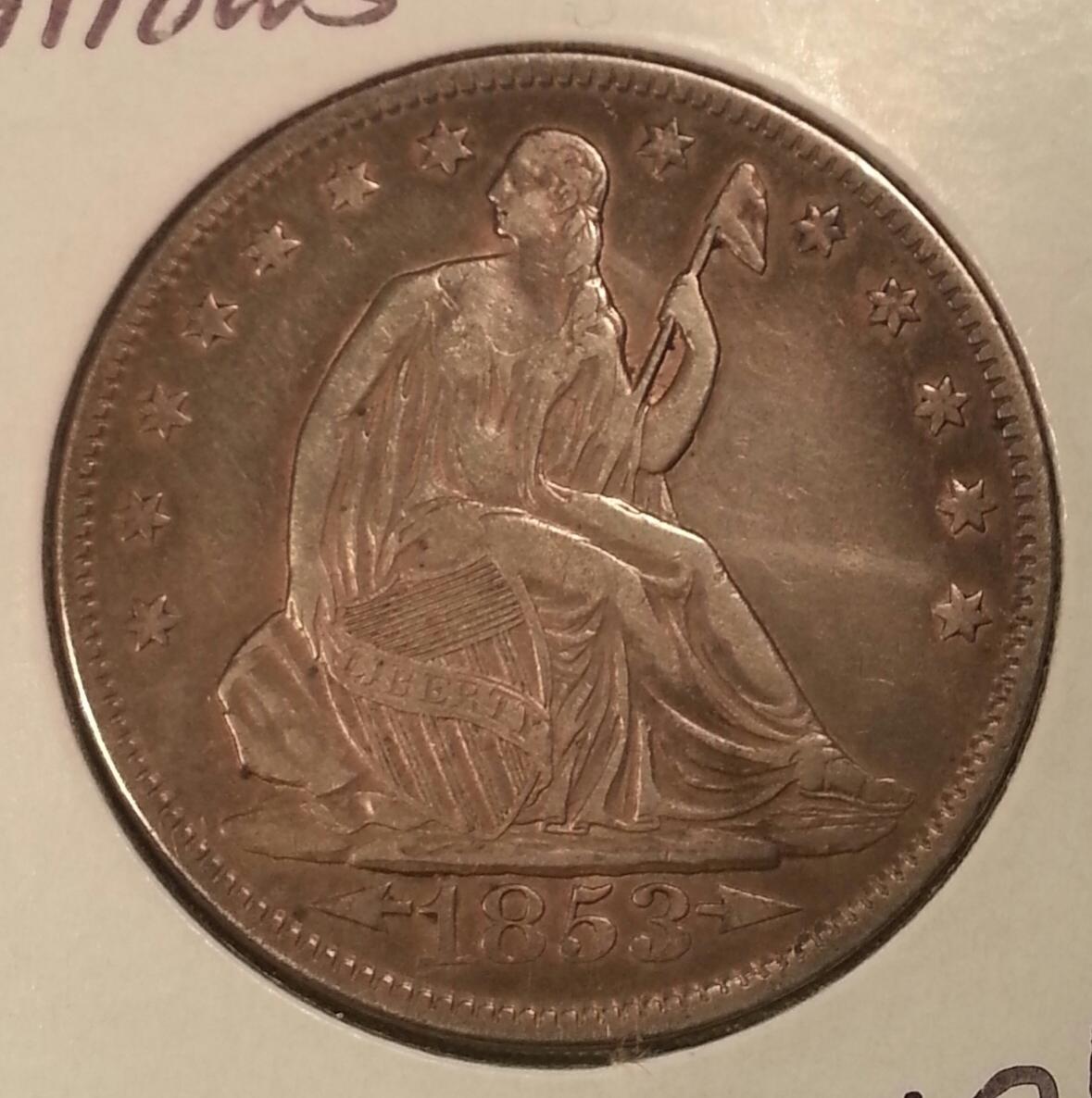 Just based on attractiveness TO ME, I would go with the half dollar. I like that color on circulated silver. The Trade dollar is rather splotchy for my tastes.
