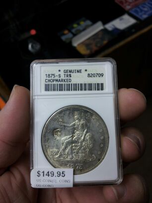 Trade dollars are heavily counterfeited so a higher grade, genuine specimen is a nice pickup (imo). Presumably it didn't grade due to the chopmarks. Chopmarks are a part of the history of the trade dollar and add character to the coin...but that's just my opinion...others may consider it "damaged goods".