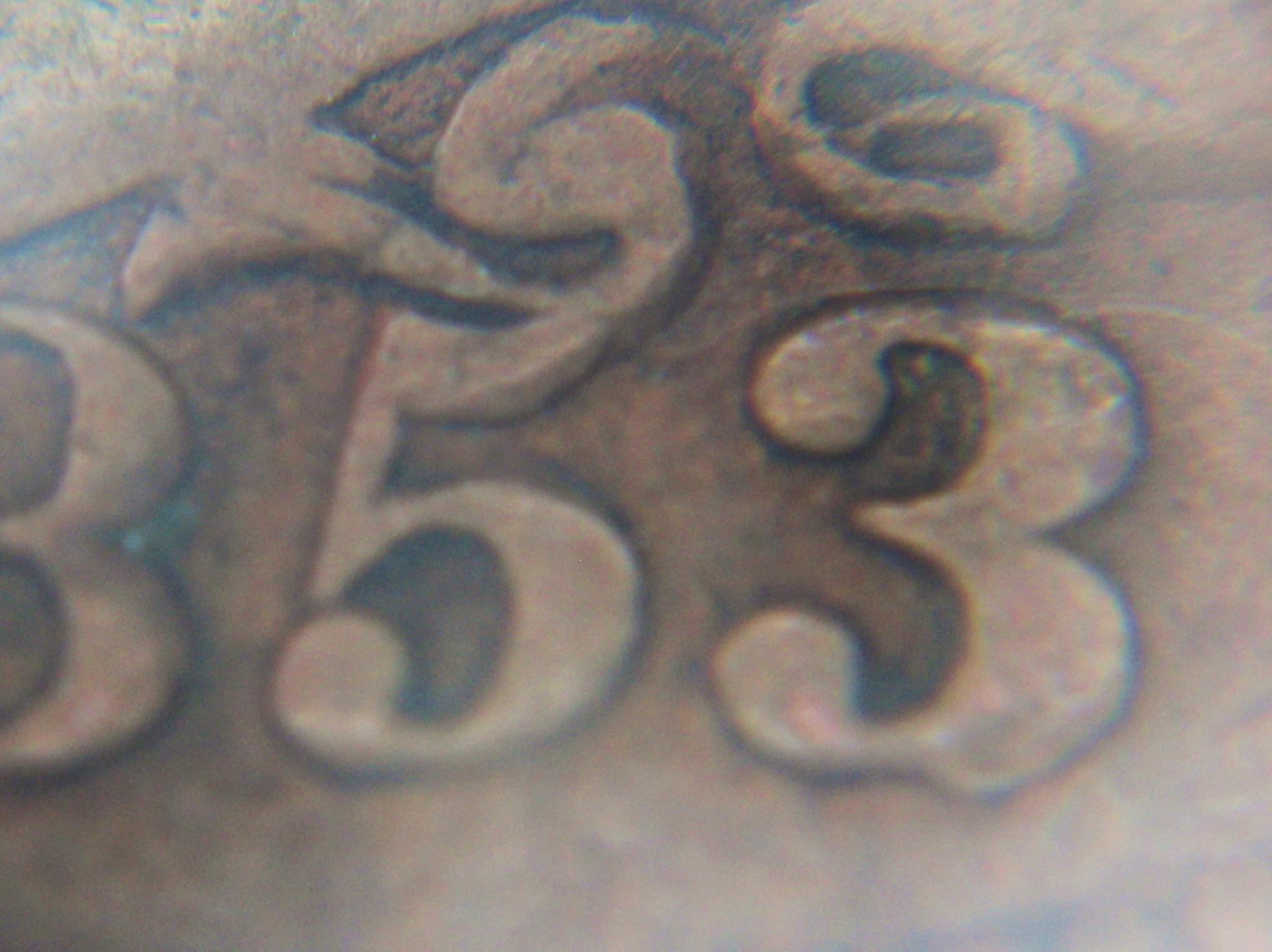 The position of the 5 relative to the hair curl helps with die diagnostics, and it touched the curl on several dies that year.