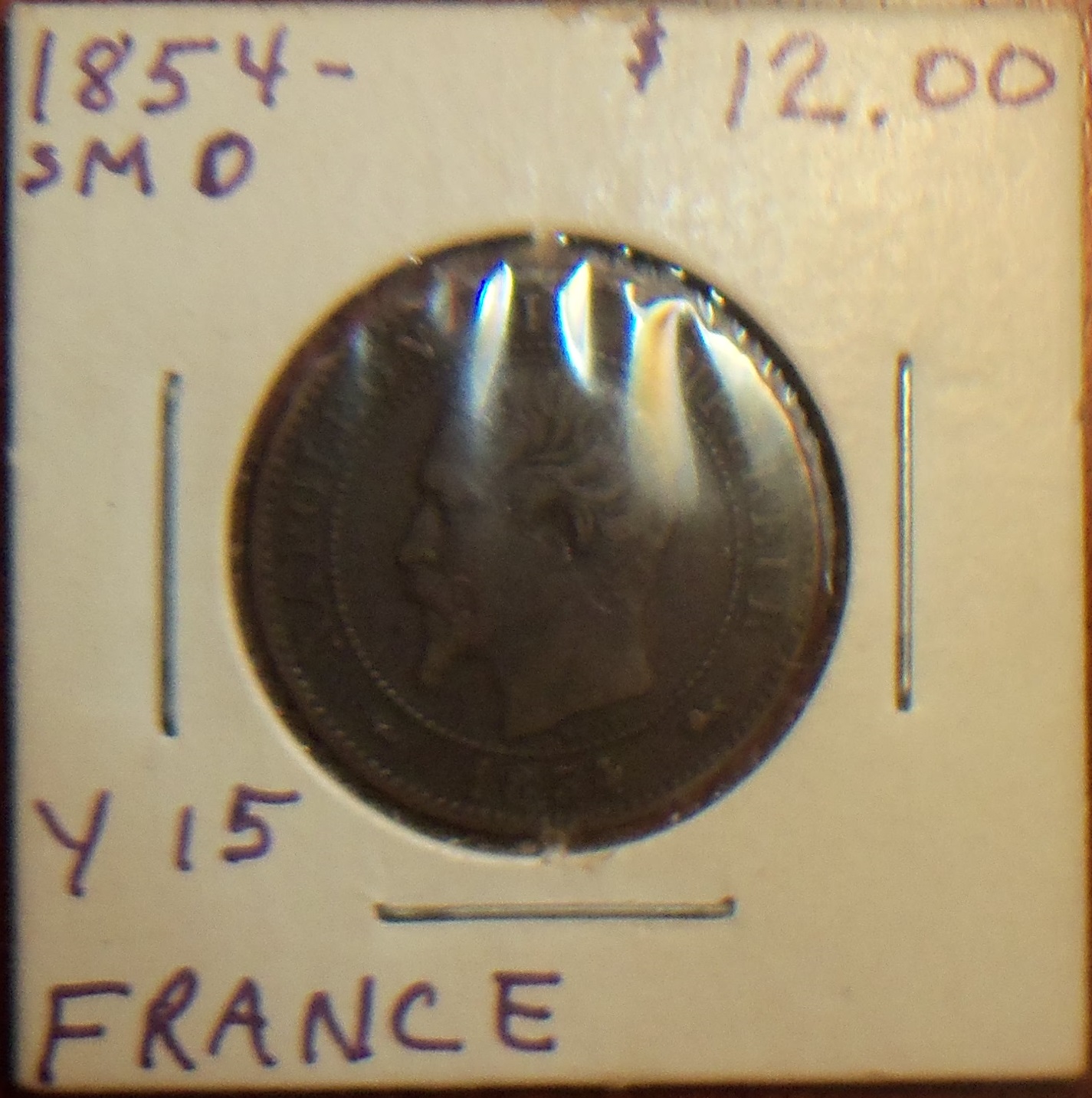 alright I decided to do some more lookin. I found this http://www.ebay.fr/itm/S38-Second-Empire-5-centimes-Napoleon-1854-A-TTB-/161146271170? and this http://www.ebay.fr/itm/5-Centimes-Napoleon-III-tete-nue-1854B-MS62-Certification-NGC-/291065220554?pt=FR_GW_Monnaies_PiècesFrancs&hash=item43c4d6cdca and this http://www.ebay.fr/itm/10-CENTIMES-NAPOLEON-III-TETE-NUE-1854-W-LILLE-SUP-/221303338107?pt=FR_GW_Monnaies_PiècesFrancs&hash=item3386b4f47b I guess for something minted that much what other countries really started making a big deal about grading and the system that most people deal by here. the first one looks good for the money. the 2nd one looks over graded. the 3rd one looks weird.. and 130 euros is 176 bucks. im not gonna say theres a better deal but as for now there isn't a better looking coin that ive seen. btw that's a nice one siberian this is the only one ive got now and I haven't had time to setup to take decent pictures