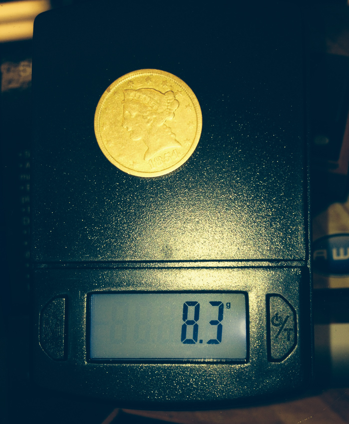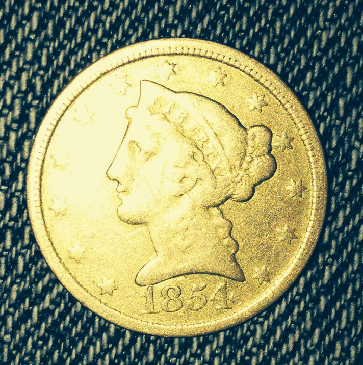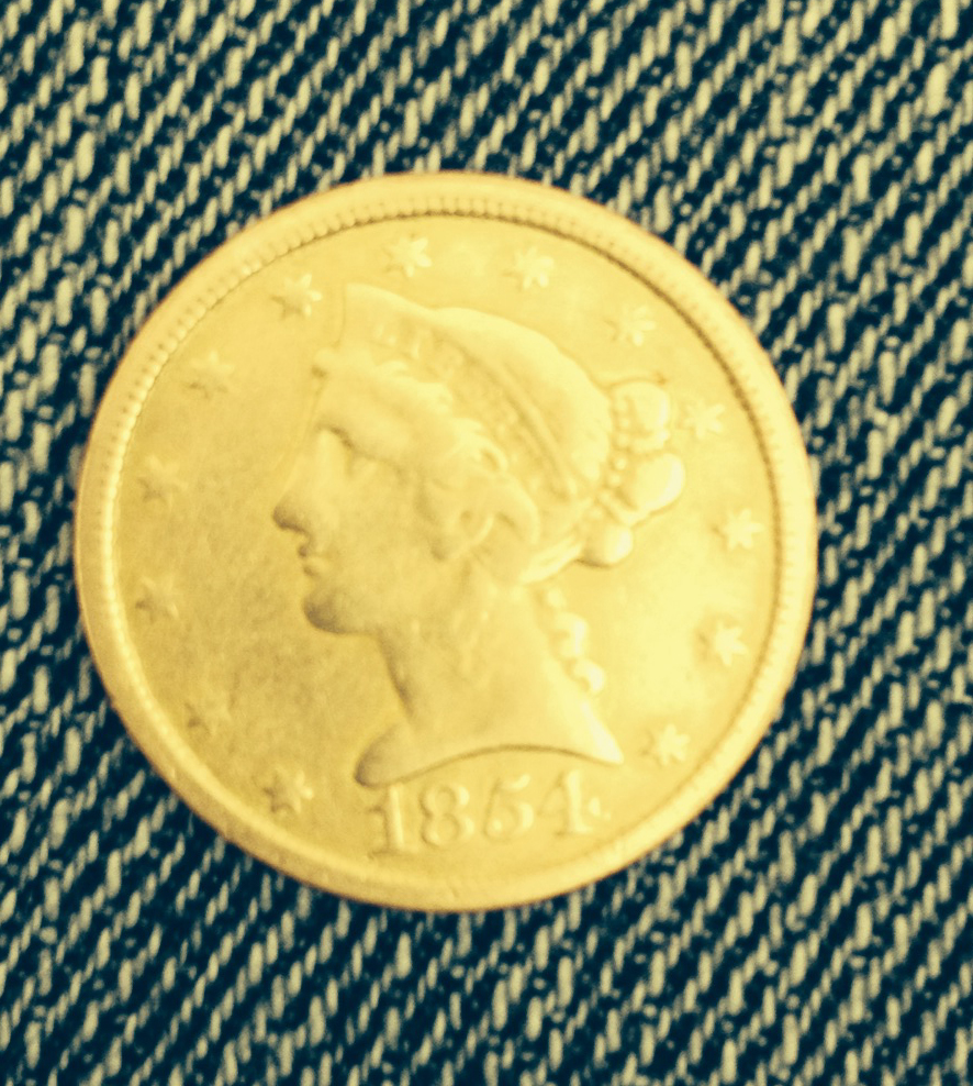 Wow an 1854 - c $5 gold was made in Charlotte nc as long as it's not an altered mintmark you got a real winner it does appear real and I can't tell if its cleaned or ex jewelry but it looks like a real good score