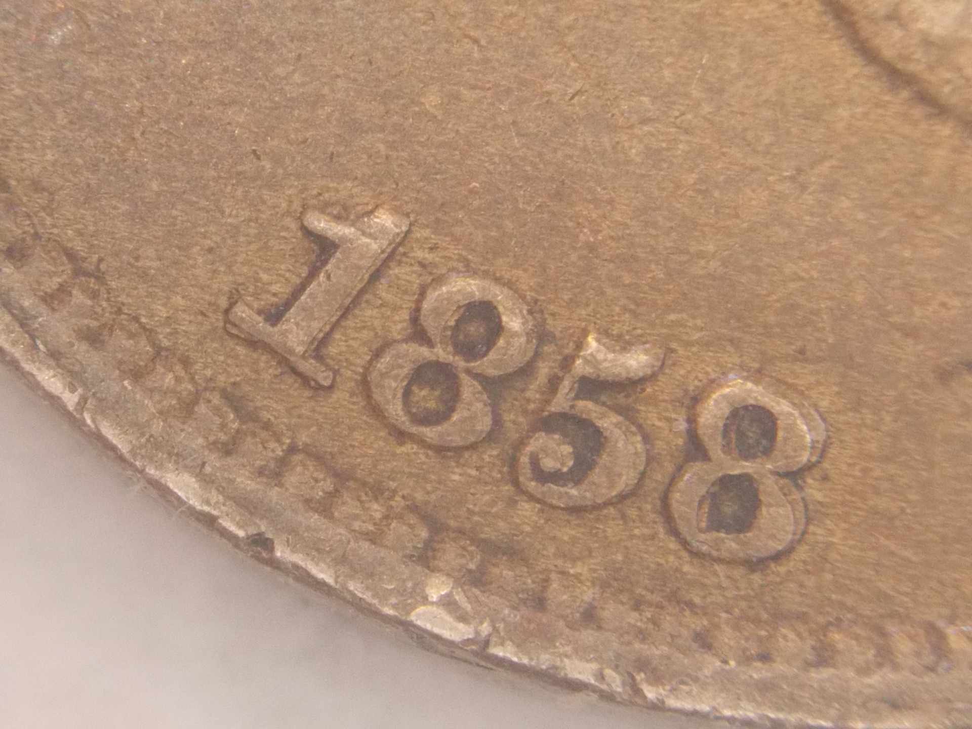 You have the small letters variety 1858. The only 1858/7's are on large letter varieties. It's a great coin but definitely not an 8/7.