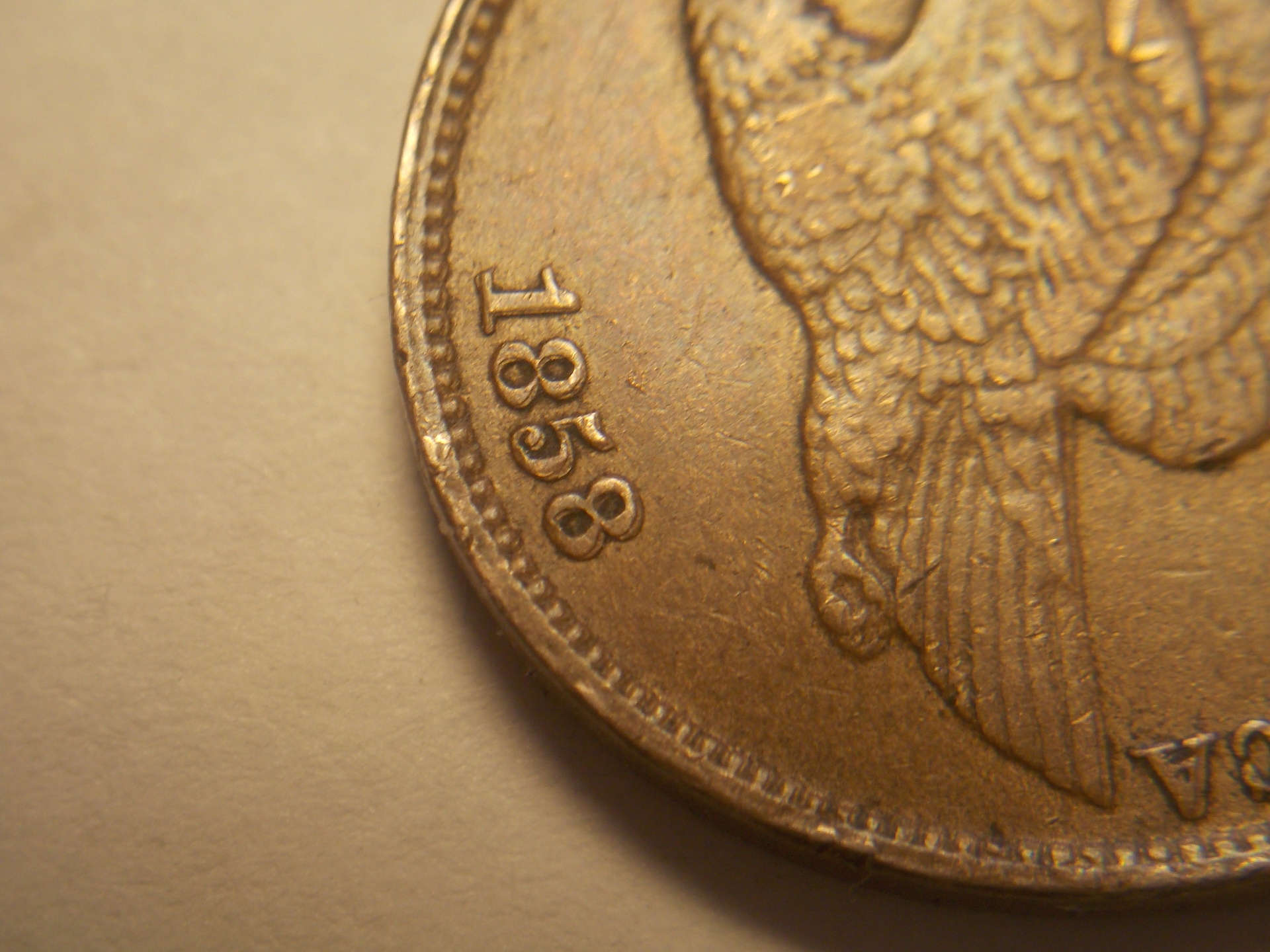 I have looked at some 1857 and 1858 error coins graded on ebay and mine looks the same. I have not seen one mechanical/machine doubling in these years that have been graded they are all ddo. Similar ones have sold 700 dollars and up to 6000 dollars. I have also read up on mechanical/machine doubling and this one is different. There is rounding in the C of America. If you comment please do your research. I am going to get it graded in order to be positive. I still want to know what you think. Thank You for reading and all comments.