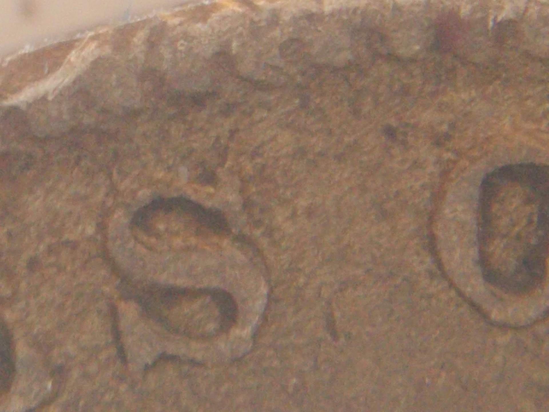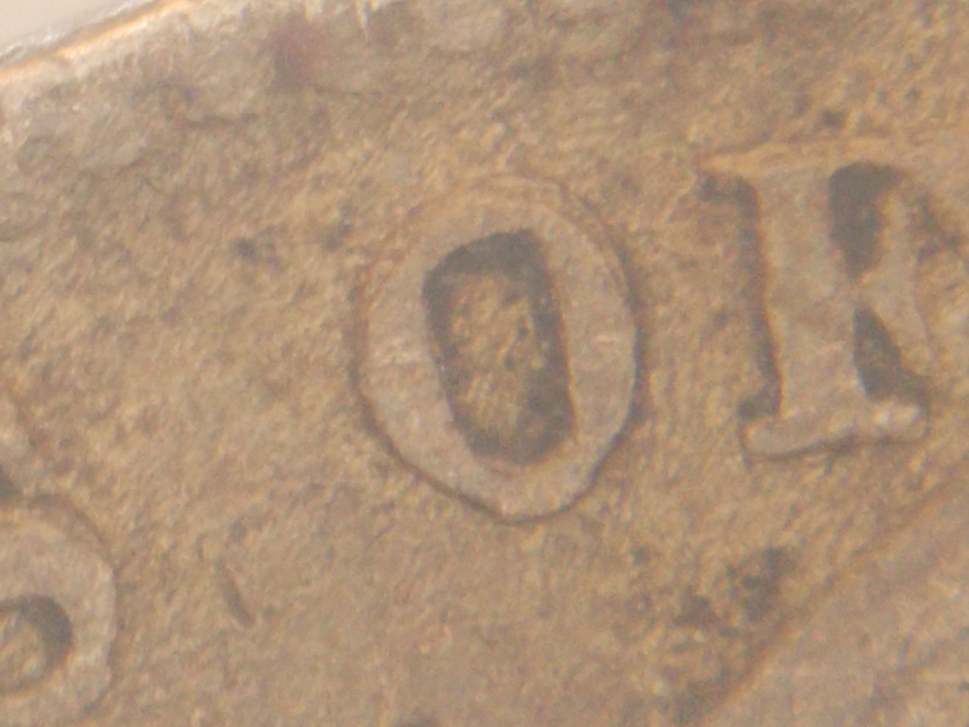 I have been looking at the picturs and I beleive there is a 7 under the 8 at the top right you have to look for it but it is there. 1858/7