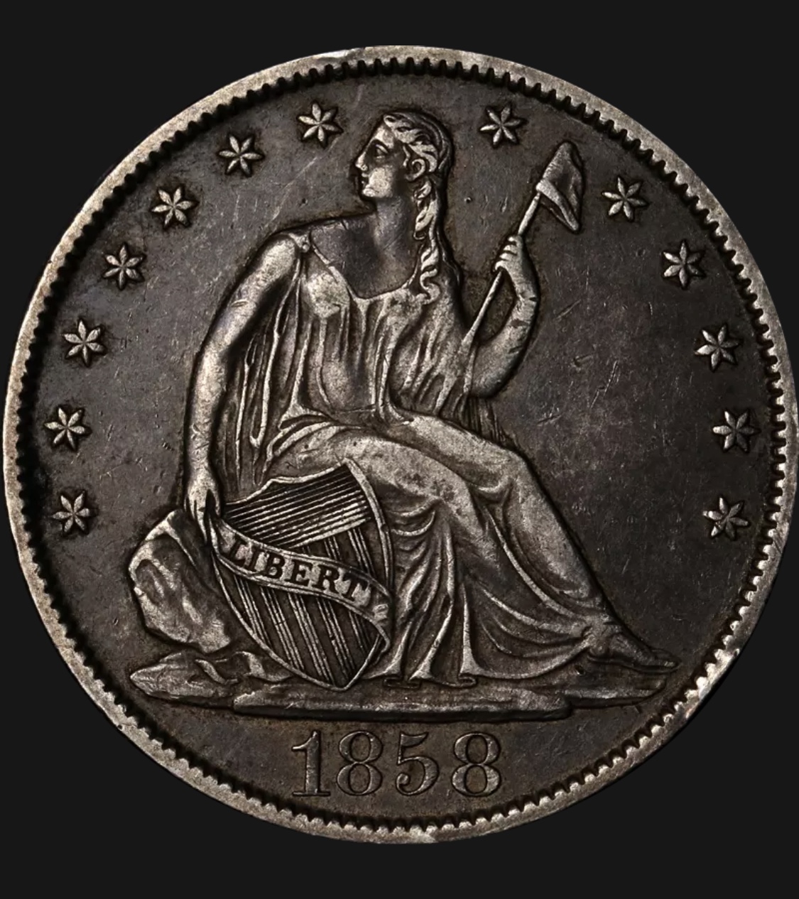 1858-O Seated Liberty Half Dollar, grade and value?