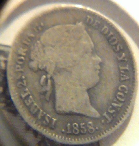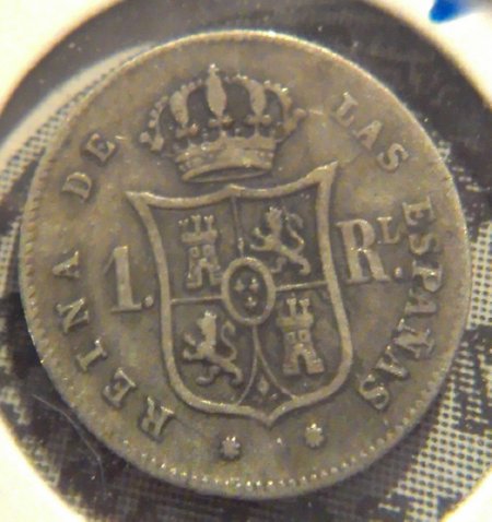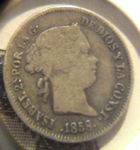 I'm not an expert on Spanish coins, but it appears that this coin used the number of points on the star to signify the mint. Am I reading the info on this link ( http://www.coinfactswiki.com/wiki/Spain_1858_real_7_point_star ) correctly when I interpret 8 points as a mint mark for Barcelona? Here are some pics (in case I'm misidentifying the coin entirely):