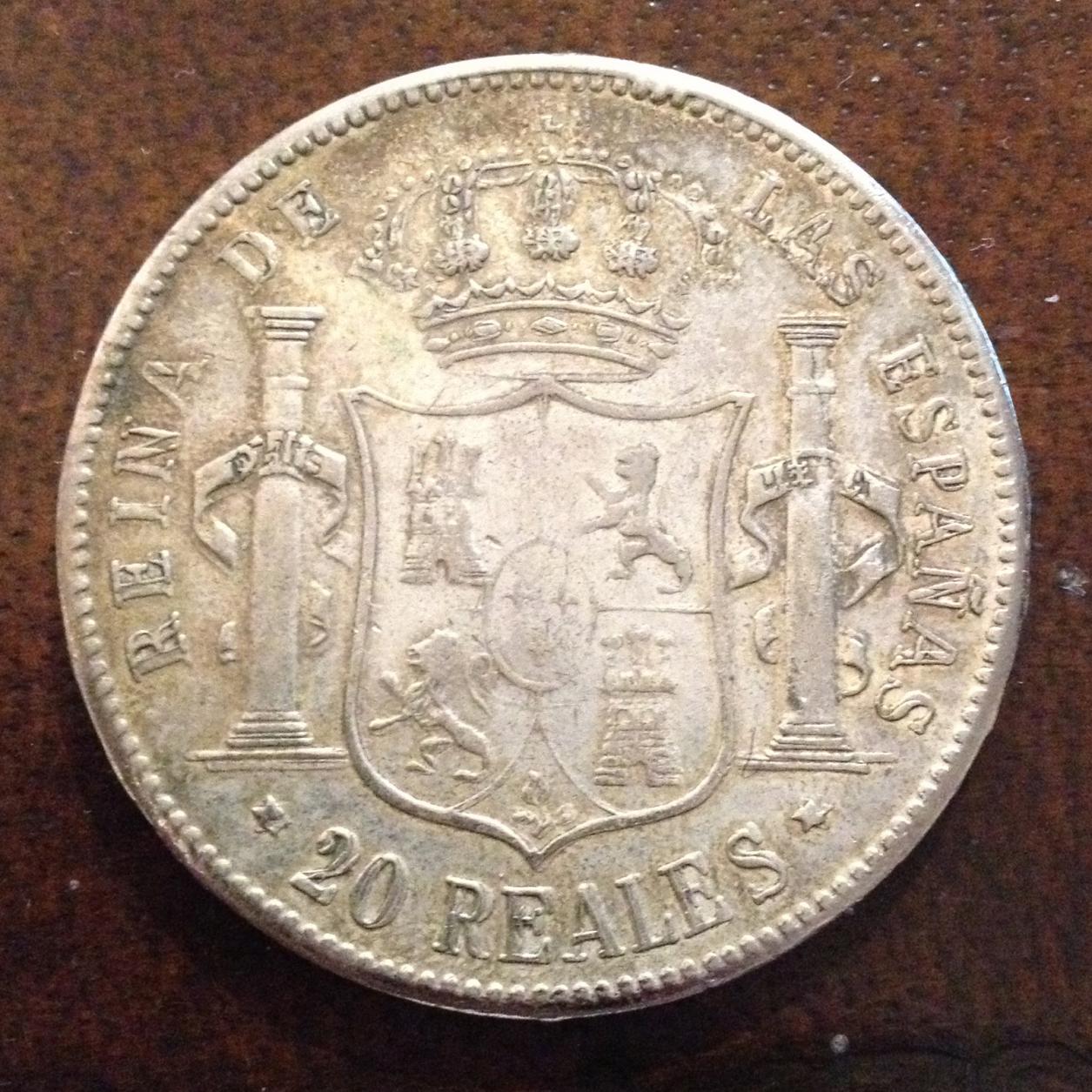 Note: I originally posted about this coin in the World & Ancient Coins forum this morning, but on further reflection give the unique characteristics of the coin I decided it may be better suited for the Errors forum. ------------------------------------------------ I recently acquired this interesting coin from a souk in Morocco and paid 240 Dirhams (~$28) for it. Upon close examination, I observed several interesting features on the reverse, including what appears to be substantial re-punching (possibly doubling?) and what appears to me to be a four-pointed star mintmark superimposed above a six-pointed star mint mark. Particularly interesting are the 3-legged R in "Reina", as well as the N which appears completely disjointed. There are also some interesting effects in the "20 Reales" and "Las Espanas" including a very pronounced doubled A in "Las." It appears at times that the doubling includes both a thin and fat version of the letter, which makes me suspect repunching (see especially the P in "Espanas"). I would be very interested in your thoughts on the coin in general, what is causing these interesting effects on the reverse and if this really could be a coin with both a four-pointed (Jubia) and six-pointed (Madrid) mint mark? It does weigh only 23.77g, which seems to be a bit light for this issue although it is a circulated coin. Are there any other potential red flags here? I am also very interested in your thoughts on what may have caused these interesting features. Thanks!