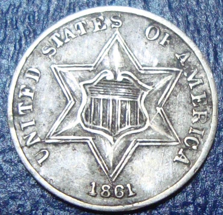 I bought this coin about 15 years ago from a trusted dealer and after cursory inspection it seemed to be OK. But after recently looking at photos that I took of the coin, I have concluded that it is a counterfeit. Breen states in his catalog that contemporary counterfeits of the 1861 3-cent silver are known to exist. My question is, how can I tell if if this is actually a contemporary counterfeit?