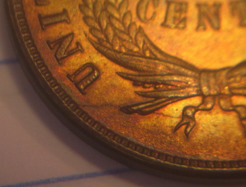 Here are a couple more pics. These are the best I can get with the camera and the lighting that I have. I also think that there is a die crack by the bottom of the wreath next to the word "UNITED"... would that add any value?