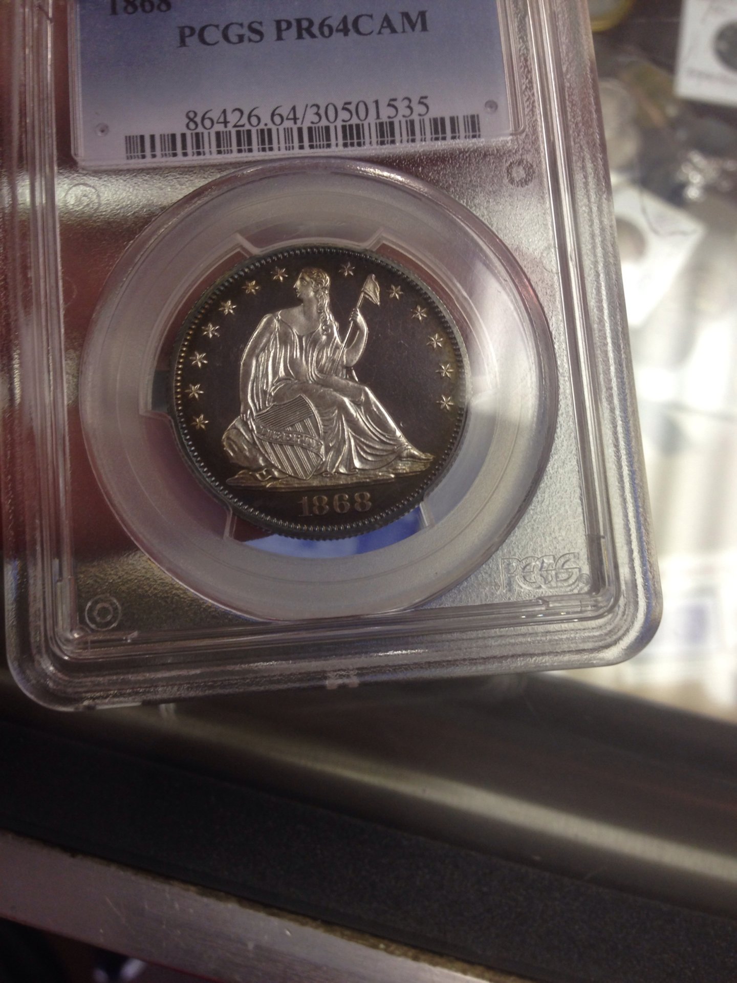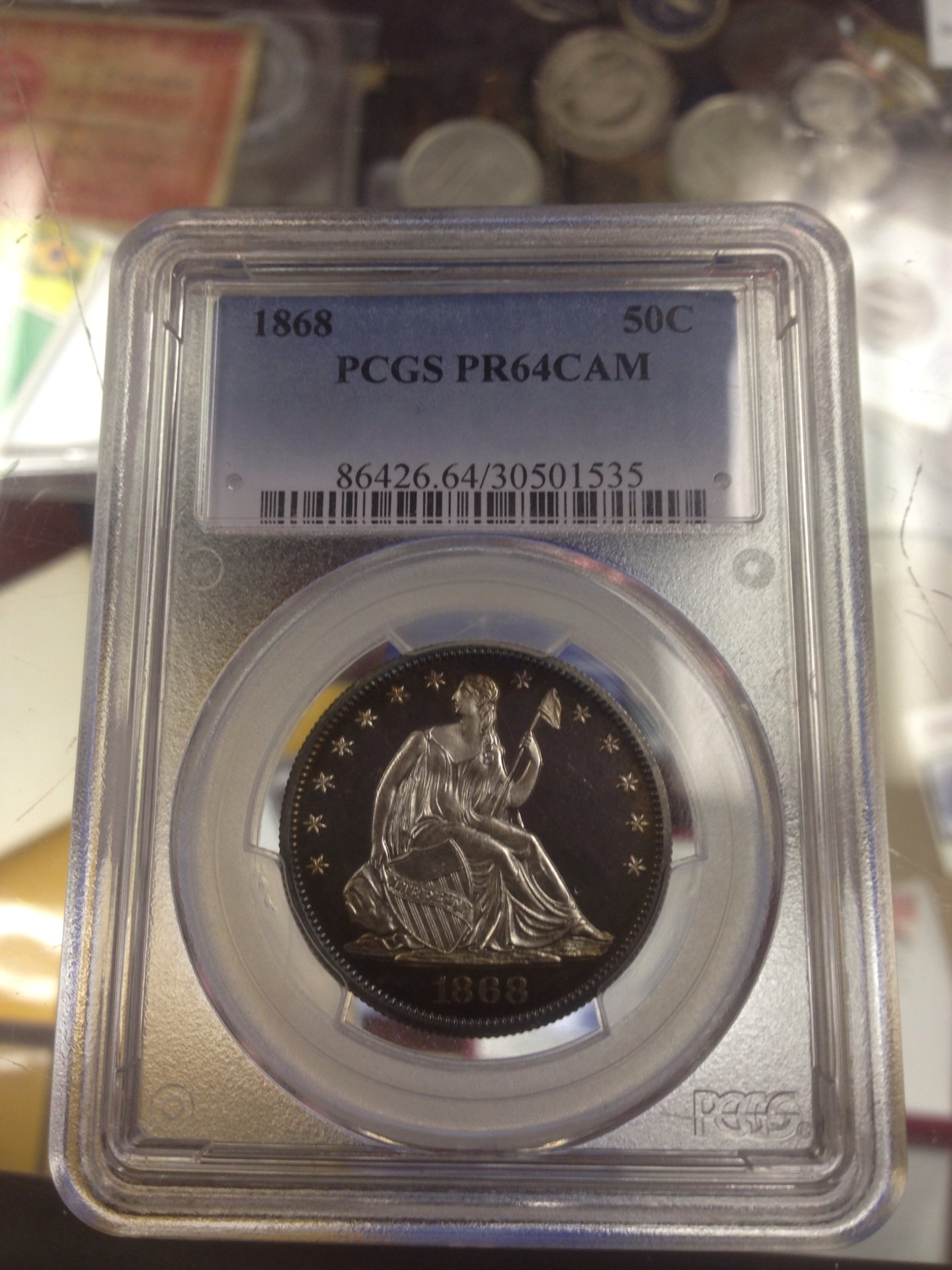 Hello. We had a proof 1868 half dollar come in the shop earlier this week and we got for $700. It came back as PR64CAM. I am wondering on what we should price it for with the Cameo. Thanks.