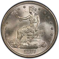 Well, I think there is a good chance that the coin is authentic. First off, as someone has said, it looks to me like the Chinese Seller ripped off the photo's from the EBAY seller, not the other way around. It would be silly for the EBAY seller to use the same photos and exact same wording, it is like a smokin' gun. Someone else mentioned the "horizon" which does appear different than the standard issue straight "horizon", but if you look at a lot of trade dollars you will find some in all dates that seem to have that same exact "horizon" pattern. Here is an example of a worn 1877 PCGS certified coin that matches up exactly with the "horizon" on the OP coin. I chose this one since it is unlikley that a PCGS coin grade XF 40 would be counterfeited. There are other out there with this pattern in different dates. http://www.ebay.com/itm/ORIENTAL-Tr...86?pt=Coins_US_Individual&hash=item5ae1c40e6a In addition, you get what you pay for even in the world of counterfeit coins. I do not believe you can get a fake of that quality for 30 something bucks. If you purchased it, you would either get a very poor substitute or it is a total rippoff and you will get nothing, just lose your thirty bucks. On the same site there are more fake trade dollars for sale and they sell for over $200. So for that price you may get a realistic counterfeit I also find it interesting that these more expensive fakes seem to have the normal straight "horizon". It would make sense then, that any counterfeit on EBAY would have the normal "horizon" The seller also seems to have a thriving EBAY buisness with outstanding feedback, I doubt he would jeopardize that for a few quick bucks Mike Here is the picture of the XF dollar with the non-straight horizon