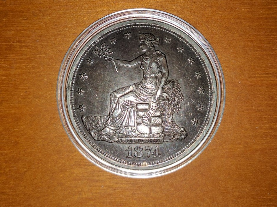 I have a 1874 S Trade Dollar that I need some help with. The weight is right, size is right, it's non-magnetic. I had 6 local coin dealers look at it and they all said it's real, one offered me $230. Do you think it's real or fake? If fake, what are the reasons you think its fake? Any help you can provide would be appreciated.