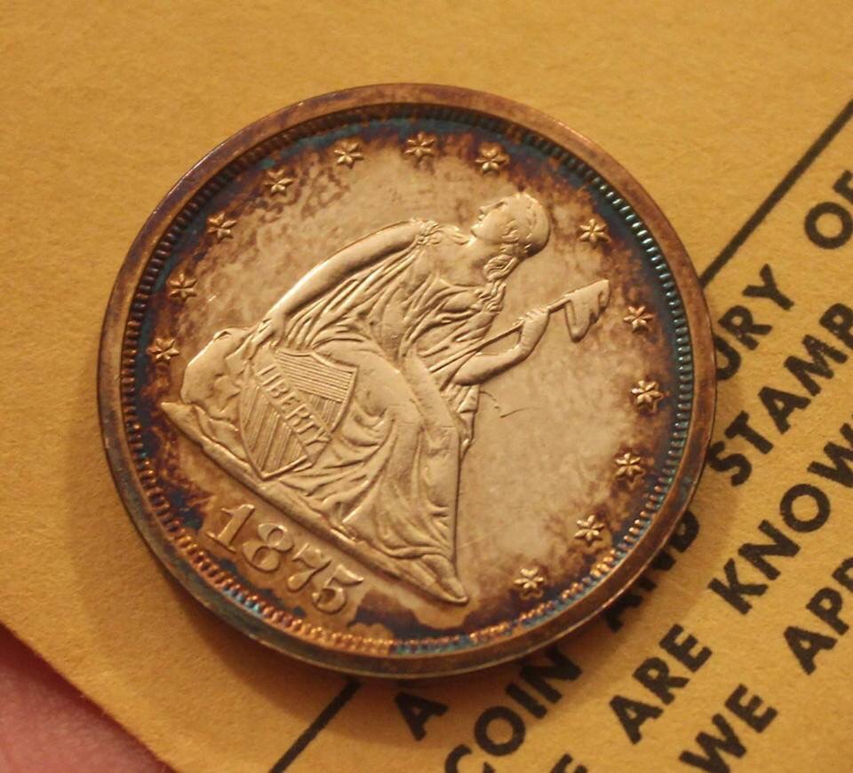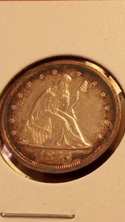 I'm not convinced it's a proof, just not crisp enough for me. I am convinced about the existence of branch mint 1875-S proofs though and have seen two very convincing examples. Here is my proof 77 for comparison.