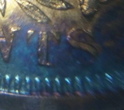 It appears splotchy and uneven around the rims, and the magenta to deep blue toning are considered 3rd and 4th cycle toning colors. Its hard to tell with the pictures provided, I just question it and cant be 100% either way. For the age of the coin I would like to see a more steady even toning progression.