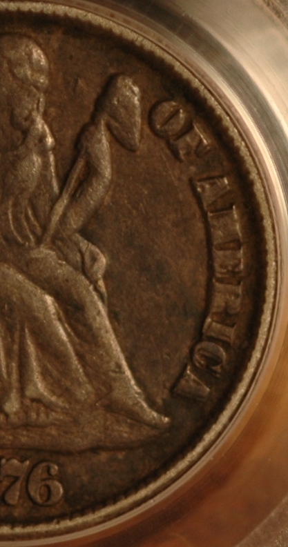 Yes, it's in a PCGS "genuine" slab and cited for environmental damage. However after showing the coin to Gerry Fortin I've learned that PCGS has a difficult time with this variety. Apparently he has had a large number of these coming back with ED. It is well known that the dies were heavily damaged and for whatever reason PCGS isn't taking this into account when grading. Last I heard from Gerry he was going to have a conversation with Willis (or maybe Hall, can't remember) asking him to inform their graders about the advanced state of die degradation this variety stems from and how this may easily be mistaken as ED. My guess is the coin is somewhere between a VF to EF and I'm considering submitting it to NGC at the up-coming Long Beach show. I've a stack of GSA's ready for submission and thinking I'd just piggy back it with the rest of the coins.