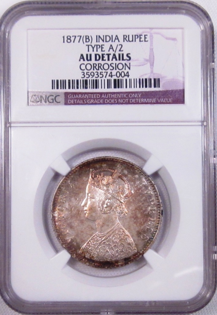 Here is a 1877 India Rupee from the 2013 FUN show. This large silver Rupee was in an NGC holder & the coin just spoke to me. It basically said “crack me out of here & take me home”. It is now cracked-out & is living a full life in my World coin collection. :smile Let me tell you that the dealer's sticker on the slab indicated that the price had been marked down repeatedly. I would have bought it without the heavy discounts. Does anyone else at CT think this is a pretty coin (or am I the only one)?