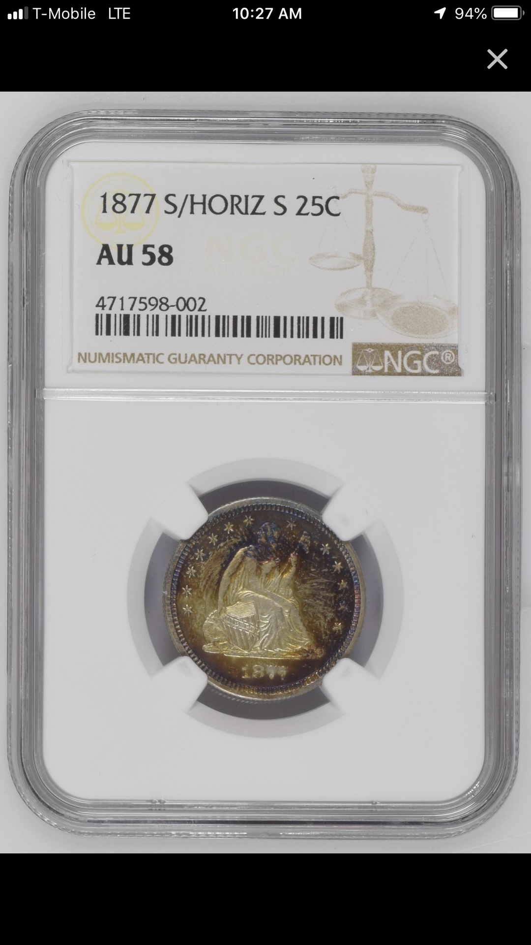 So this was already in a NGC slab, but I felt it was under graded. It's in QC right now at NGC and it'll likely be at least another week before it ships with my other subs, but take a guess where this one landed. The color really is nuclear blue/purple. Video with Previous Grade **Note- No 77-S/S show up in the pop report as a AU53 so it looks like it did upgrade... but just where to... wish I had kept the report numbers prior to my submission. I will not be surprised if this is in a MS holder now....