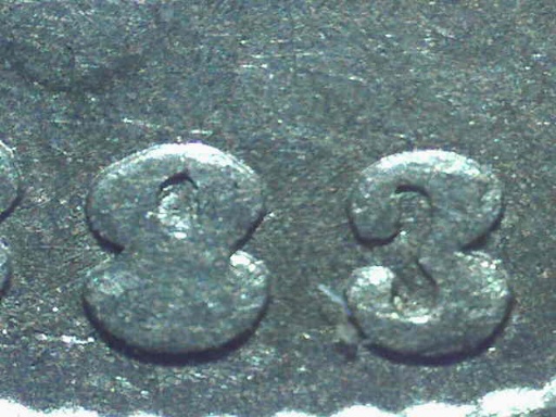 Here are a couple of others from the date and the arrow. The shaft is gone from the arrow and the bottom of the one 8 is filled.