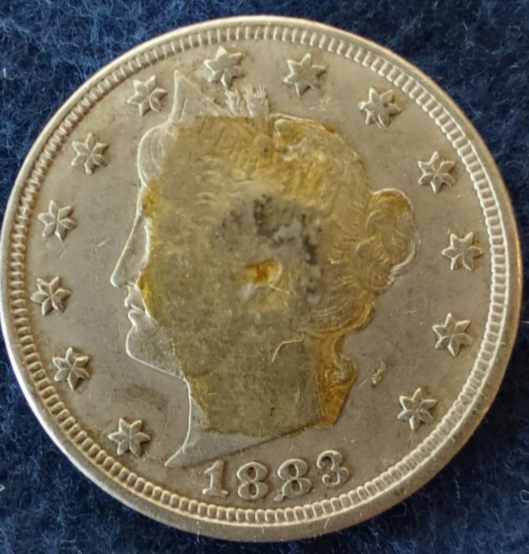 In 1883 the mint brought out the "new" design for the nickel. First year they forgot to put "cents" on the reverse and the myth was born that people gold-plated them and passed them for the new $5 gold piece...probably either not true or rarely done. Later in the year, they re-designed them and put "Cents" on the reverse and made LOTS more. Kicker, the no-cents is worth less than the cents version because so many people saved the anomaly.