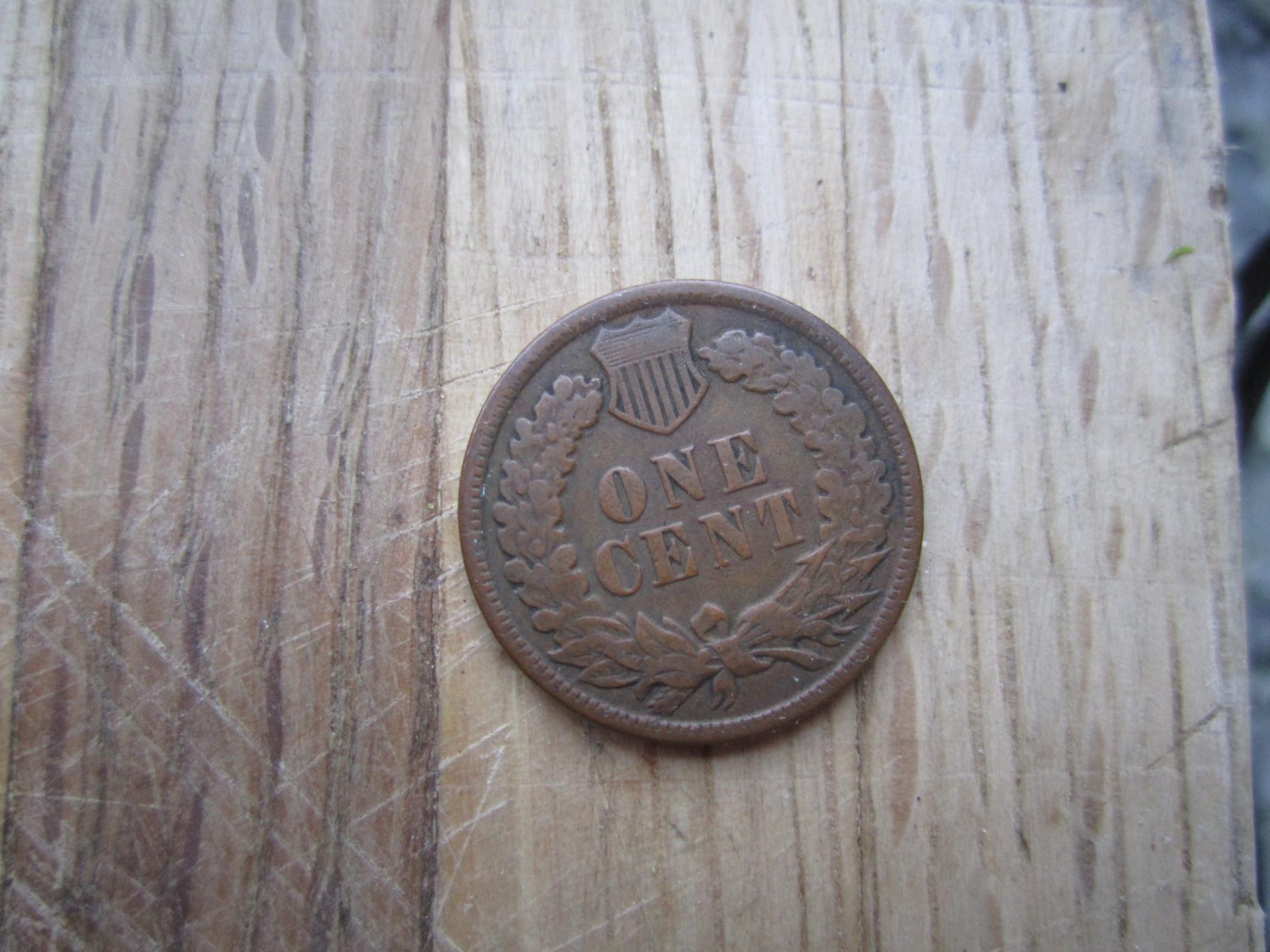 across the vertical lines on the right side of the shield there's some residual of parallel lines a bit diagonally - i am guessing from contact with the horizontal lines from the shield on the reverse of another indian.