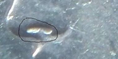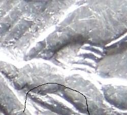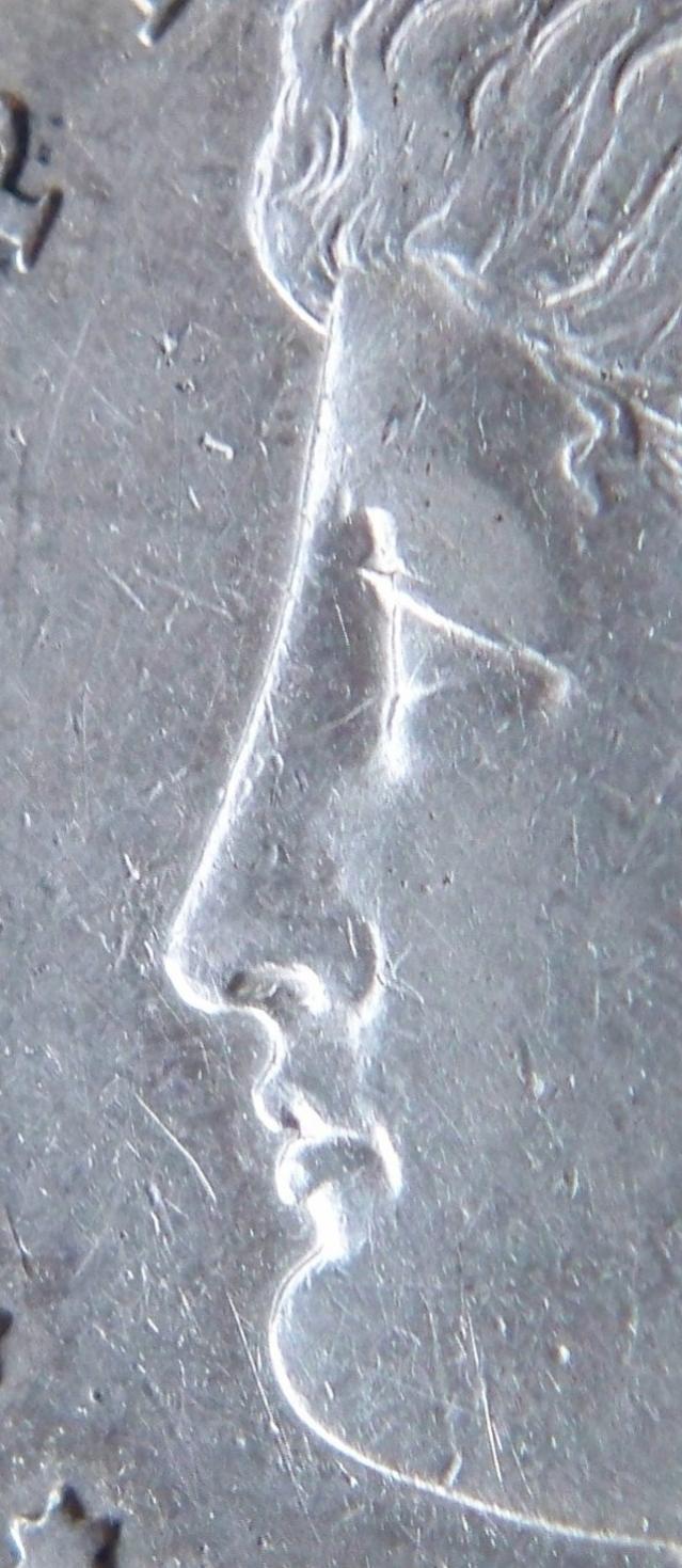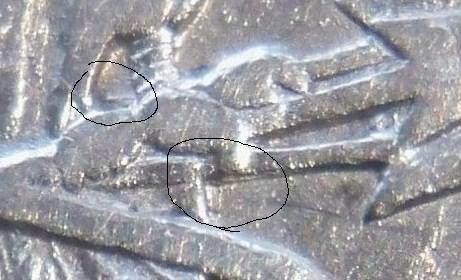 what are your thoughts on the doubling on the face , eye, and mint mark are these MD . also is the marks inside the circles common for this year coin .