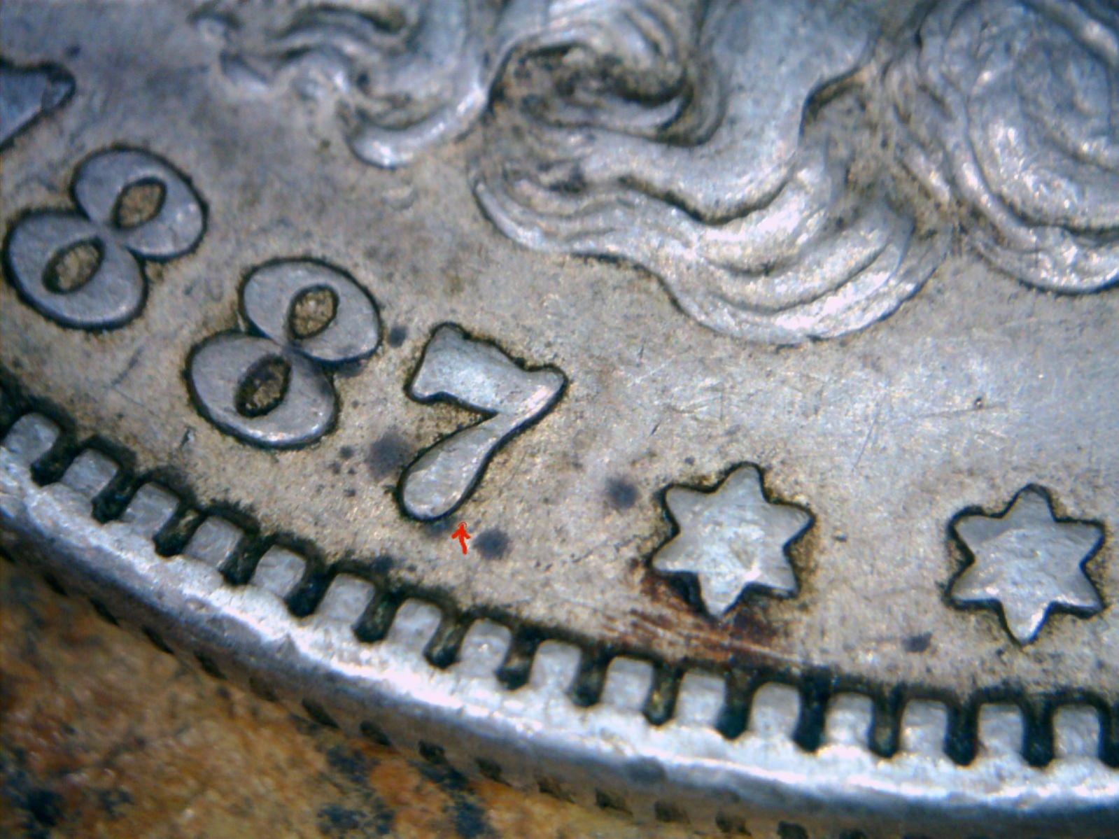 I do agree with you that there is nothing visible in the way of PMD that would lower it's value. I just don't see the remnants of an underlying "6" which should also be visible about one-third of the way up on the left side as well. One thing you should keep in mind about VAM's like the 7/6 is that if the die is repolished for a second or third time to remove evidence of (in this case) an underlying digit, it would revert to the VAM of a normal die even though a PUP (marker) may still be present. Chris