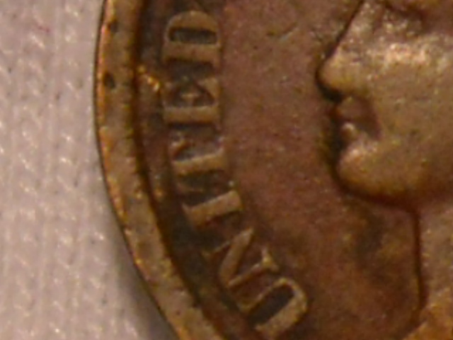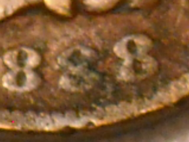 I'm still trying to post some good pictures of this coin in hopes that someone can help me. It just kooks like it has everything that is a 1888 over 7 Indian head penny, the larger top conner of the last 8 and the cud at about 9:00. Please take a look and let me know what you think.