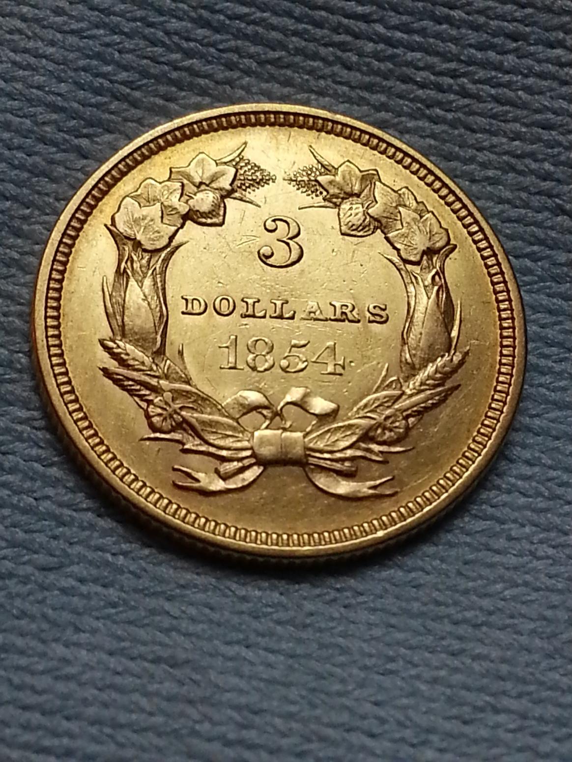 This is one of the cases where my loss will be someone else's gain as I really do not want to part with these ladies but financial issues are forcing me to do so. These coins are both raw, ungraded. The 89-CC is of course THE most elusive of all CC struck Morgans and one of the great keys in the Morgan series. This coin is gorgeous. It is an awesome circulated piece which in my opinion adds to the history and character of the coin. It is a SOLID XF-25 to XF-30 as can be seen in the pictures. Please message me with your offer if you are seriously interested as I need to sell this coin soon and dont want to deal with ebay. View attachment 262288 1854 Indian Princess $3 Gold Piece. A BEAUTIFUL COIN. First year of mintage. Coin has its FULL ORIGINAL MINT LUSTER, with just a couple of small nicks/contact marks which are to be expected for a soft gold coin minted shortly before the Civil War. I conservatively grade this coin at AU-50 to AU-55, as the details on the headdress are sharp as is the word "Liberty". The reverse, like the obverse has its full luster and great detail on the wreath. Once again PM me with your offer. I can accept paypal or moneyorder and will pay shipping cost, though those details can be formalized upon an agreement being reached. Thanks WF