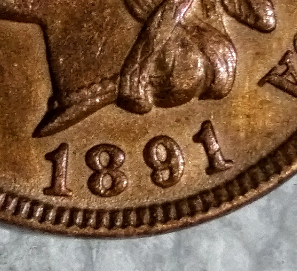 *****Note to Kaye make sure you're sitting down .....in the bath room as if what you're saying is true...... this is going to make you.......See below>>>>>>> @Kaye Well Kaye, so here's a little bit of Vitamin P That's "P" for Paddy to help you shed some of those negative vibes..... not only did you find a nice 1891 IHC specimen but you found a "rare one" ......... OH YEAH! And if you go here..... http://www.indiancentvarieties.com/1891_variety006.html You as well as others will be amazed as to your find. 1891 variety #6 this maybe one of less than 5 known So that said congratulations on your find. Paddy