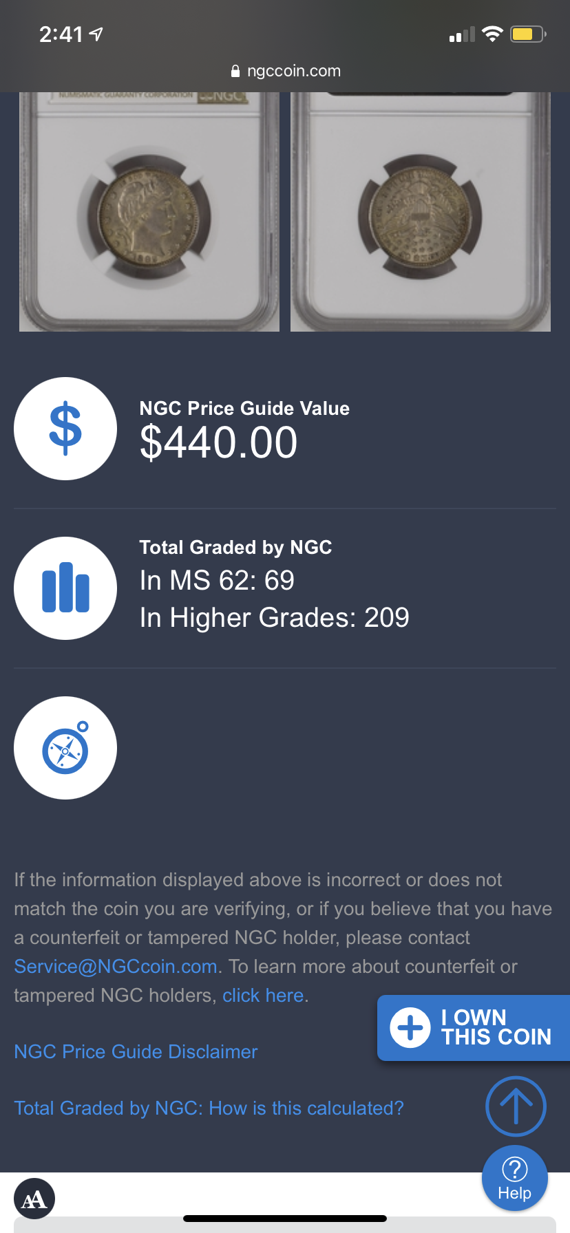Not bad when I only snagged her for 115$! I don’t know if NGC has different pricing per grade then PCGS because they say it’s worth 425$ but I can assume that toning can add a little worth to her!